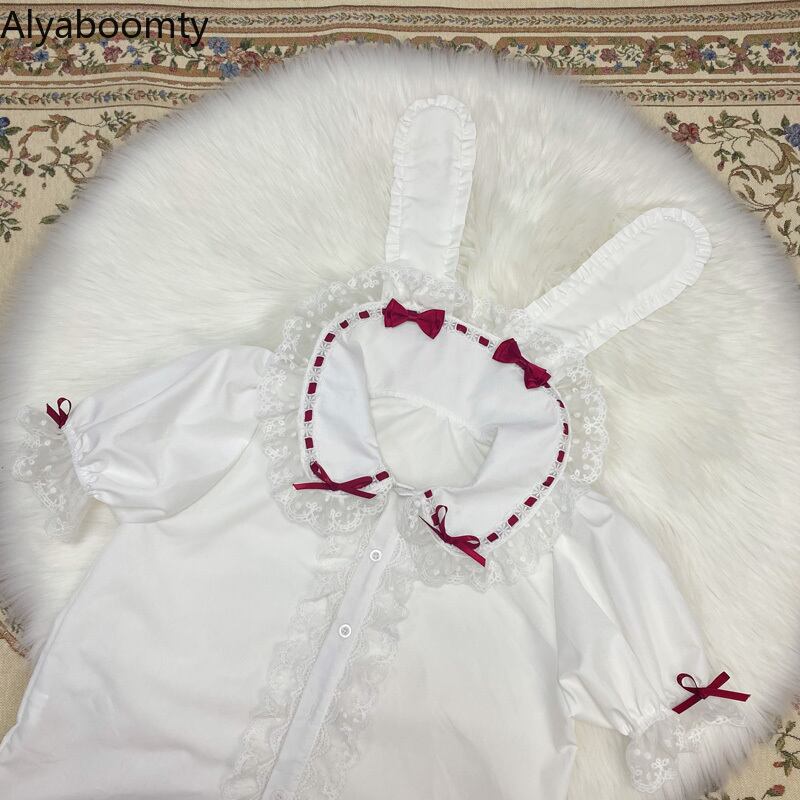 送料無料୨♥୧ スタイルサマーレディースホワイトブラウス カラーレースフリルリボンシャツ ラッフル 大人ガーリー スウィート キュート カジュアル 夏物 AOS99955805094