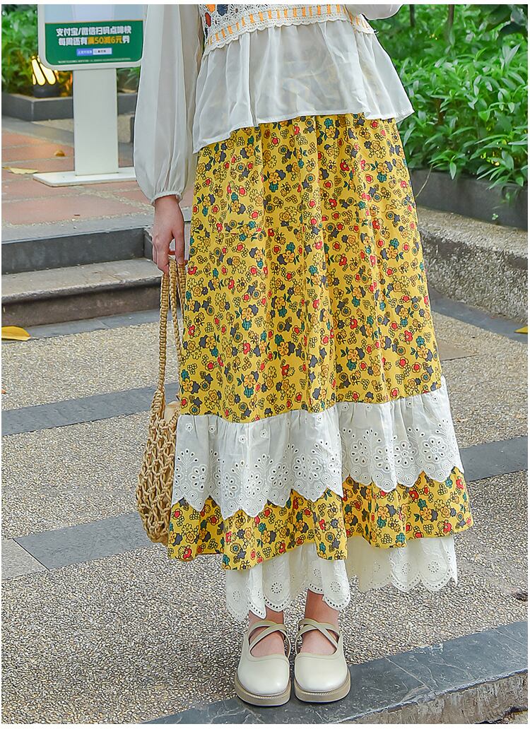 送料無料୨♥୧ スプリングサマーレディースミディスカート ウェストフローラルプリントヴィンテージフリル コットン ラッフル 大人ガーリー スウィート キュート カジュアル 春物 夏物 花柄 ビンテージ AOS53278745257
