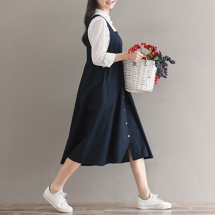 送料無料୨♥୧ スプリングサマーレディースノースリーブヴィンテージドレス ネイビーブルールーズ コットン 春物 夏物 ビンテージ AOS49210881624