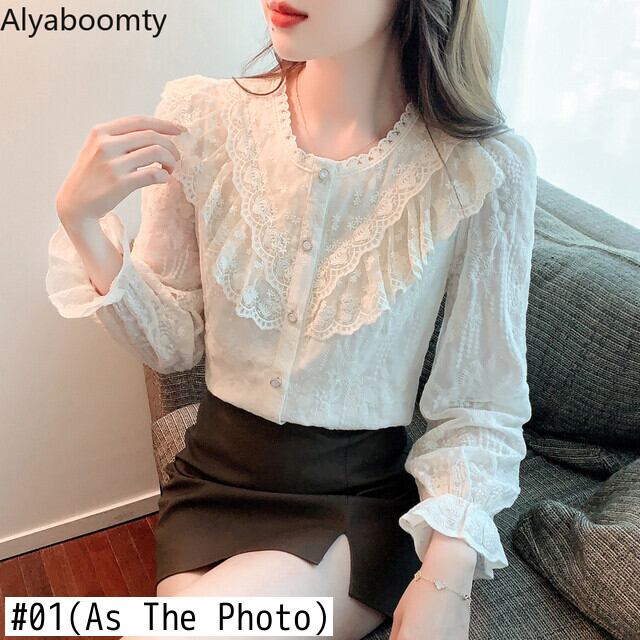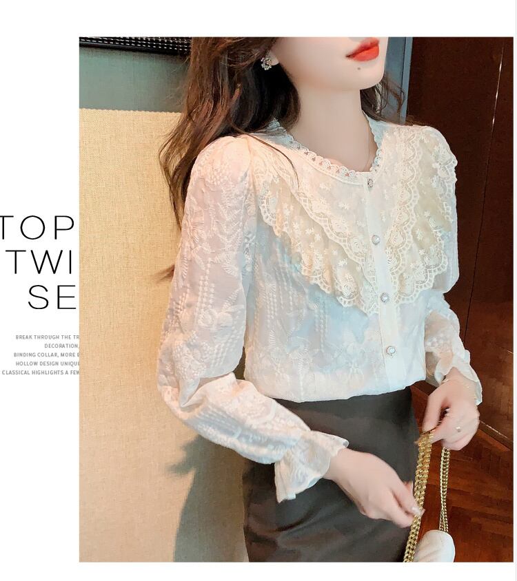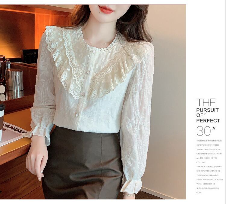 送料無料୨♥୧ スプリングオータムレディースブラウス スタンドカラーカラーフローラルレーススリーブシャツ フレアスリーブ 春物 秋物 花柄 AOS53288179939