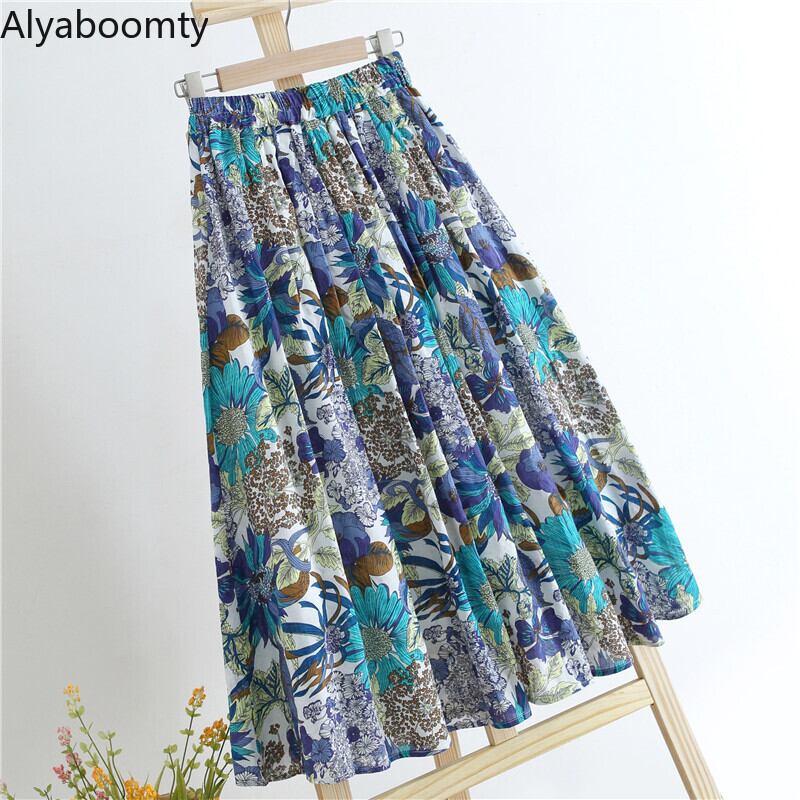 送料無料୨♥୧ スプリングサマーレディースフローラルスカート ストレッチスタンダード ロング コットン レトロ エラスティック 伸縮 大人ガーリー スウィート キュート カジュアル 春物 夏物 花柄 AOS18014975918