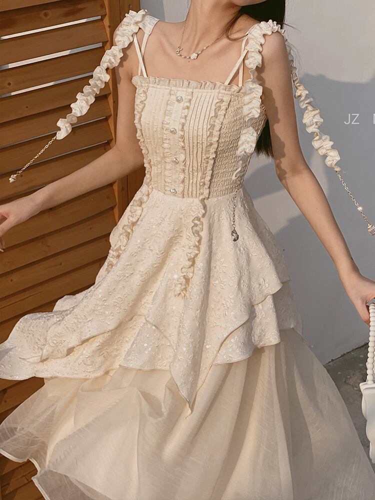 送料無料୨♥୧ サマーレディースロングドレス ジャカードフローラルフリル レッド ラッフル 夏物 花柄 AOS6087343396