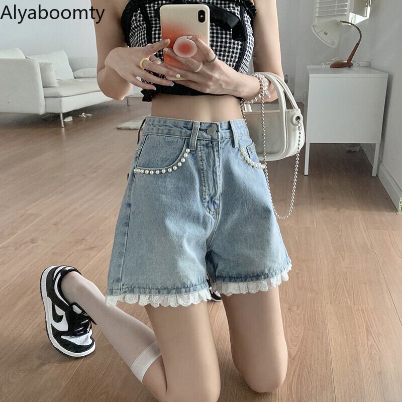 送料無料୨♥୧ サマーレディースストリートウェアショーツ ウェストブルーレース 大人ガーリー スウィート キュート カジュアル かわいい 夏物 ブルマー AOS23157488678