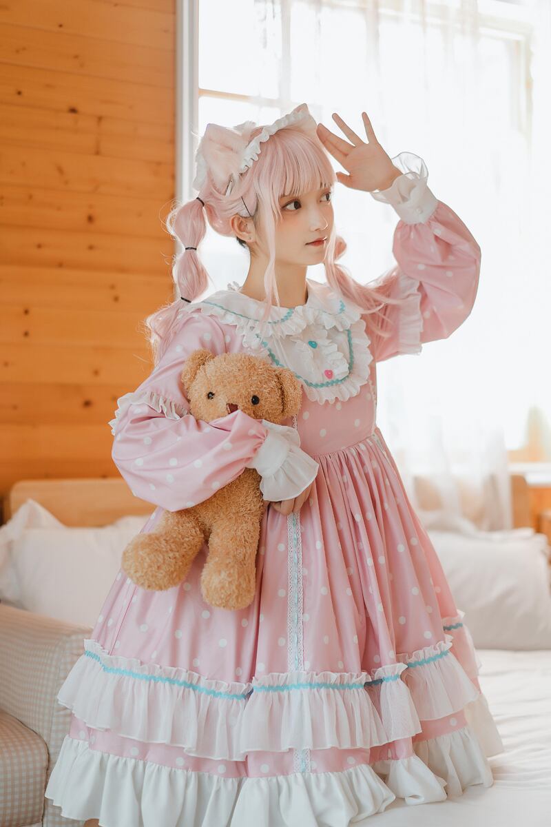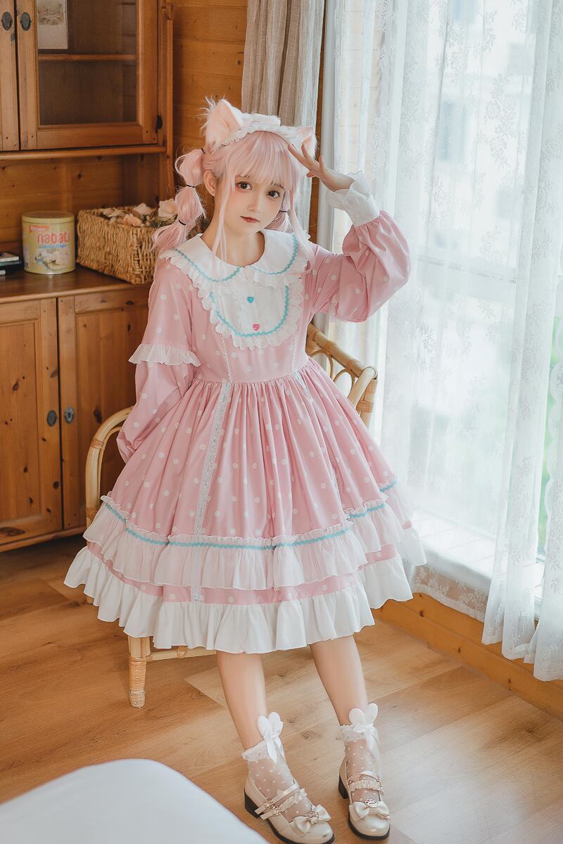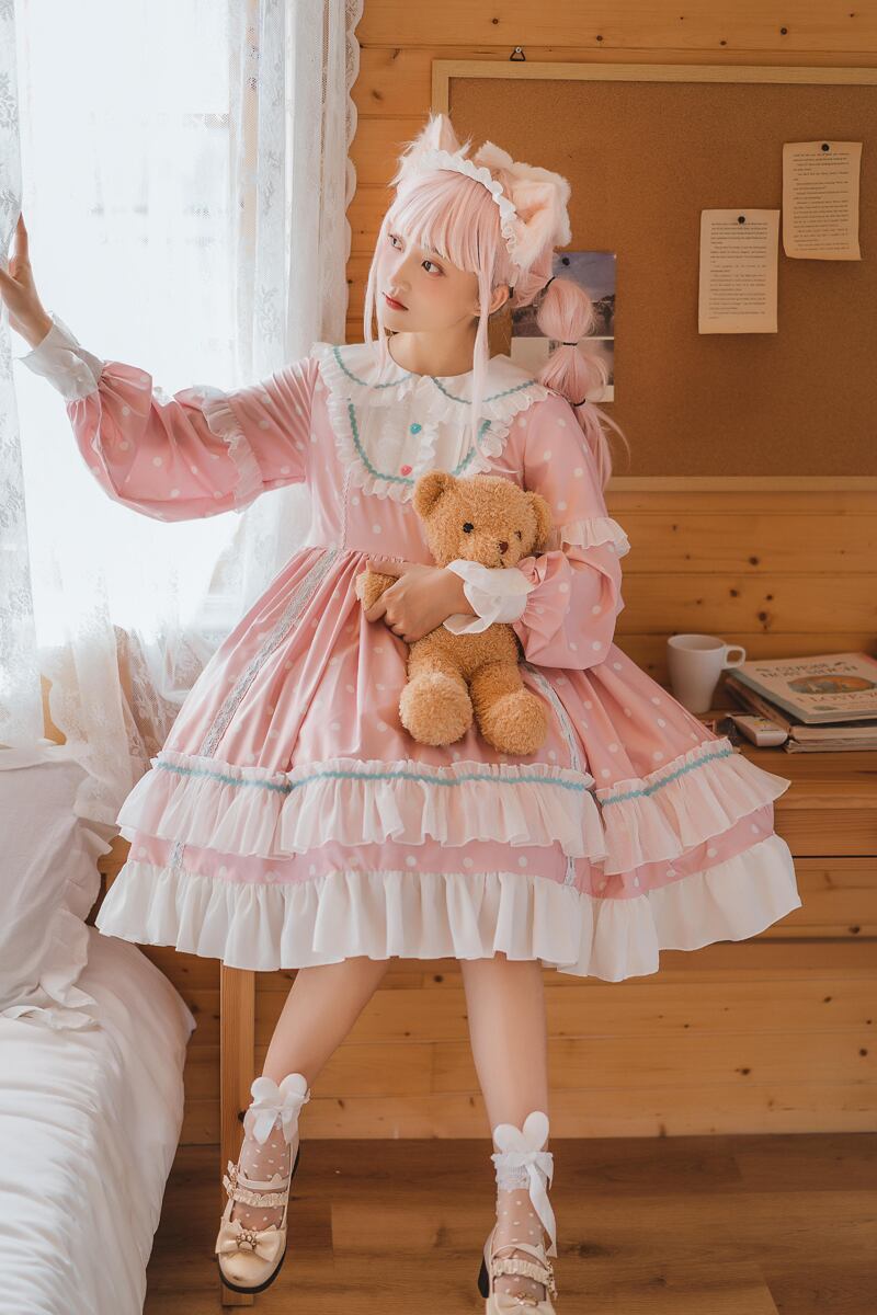 送料無料୨♥୧ スタイルスプリングオータムレディースドレス カラーブルーブラック水玉フリル ピンク ラッフル 大人ガーリー スウィート キュート カジュアル 春物 秋物 AOS57847847062