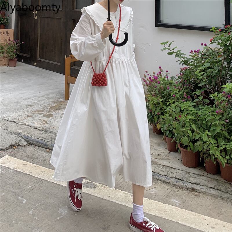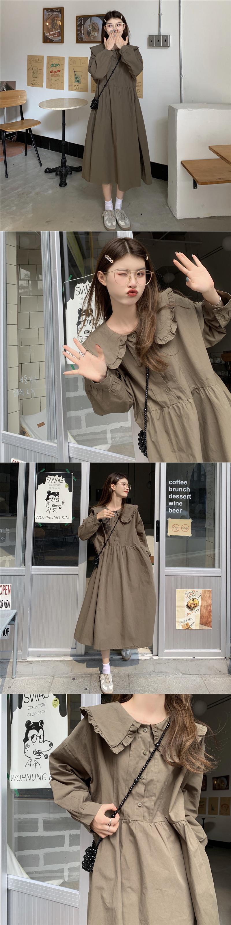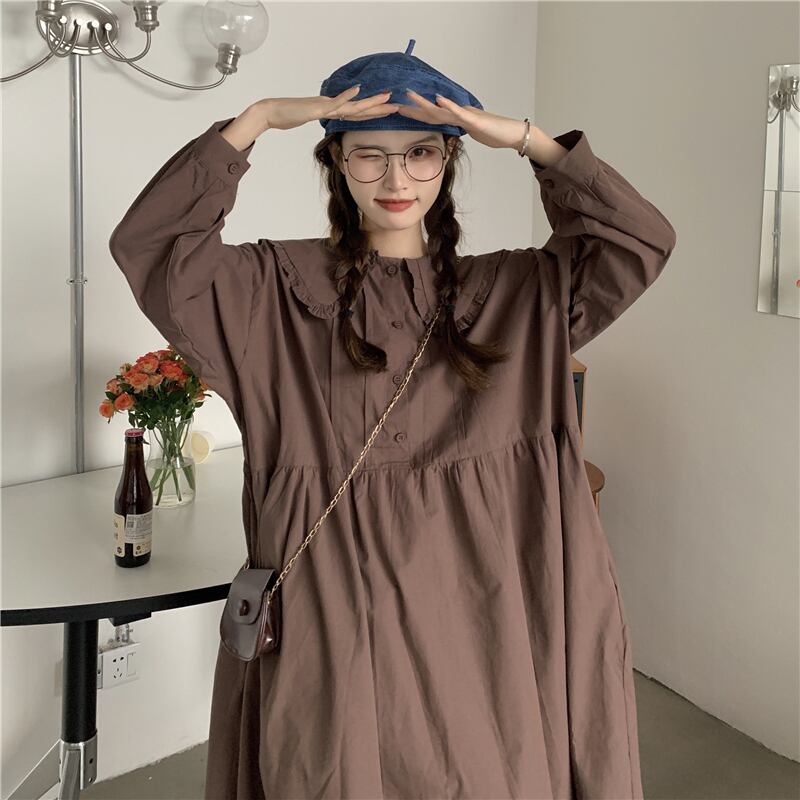 送料無料୨♥୧ レディースストリートウェアミディドレス カラーホワイトブラウンルーズロング かわいい AOS12029182531
