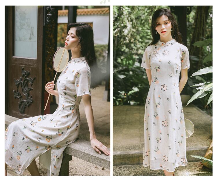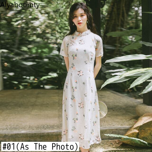 送料無料୨♥୧ スタイルサマーレディースラインミディドレス スタンドカラーカラーフローラルプリント半袖スリーブロングドレス ワンピース ショート ハーフスリーブ 夏物 花柄 Aライン AOS22444755323