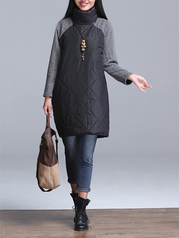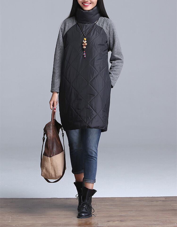 送料無料୨♥୧ オータムウィンターレディースドレス ルーズパッチワークブラックグレーレッド コットン 秋物 冬物 AOS46466608295