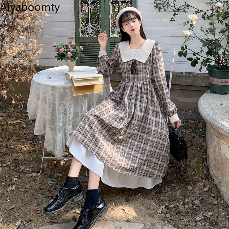 送料無料୨♥୧ レディースロングドレス スタイル格子柄リボンスプリングオータムフリルヴィンテージ ラッフル 大人ガーリー スウィート キュート カジュアル 春物 秋物 ビンテージ AOS2773909029