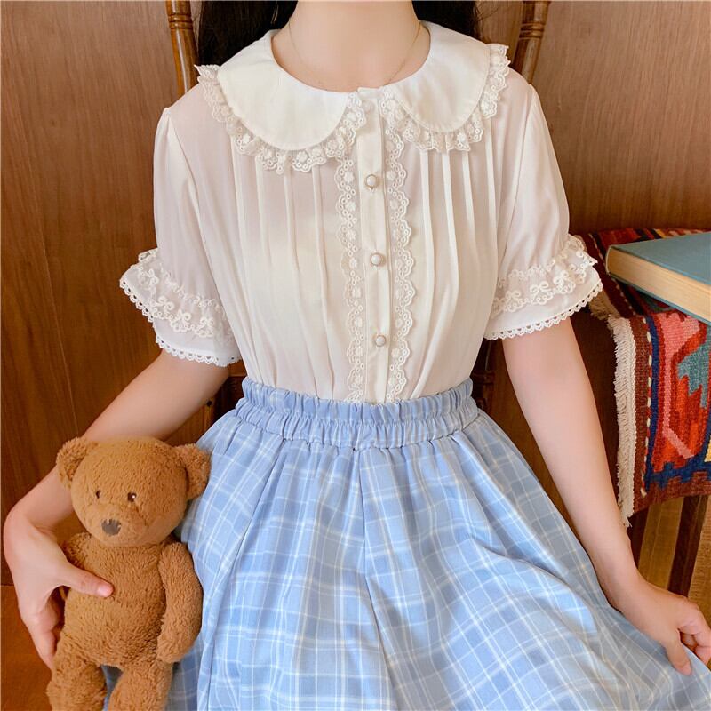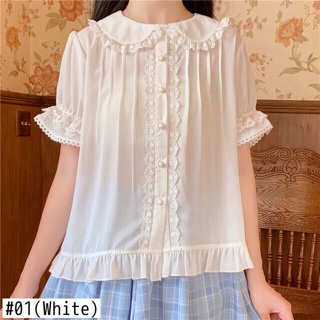 送料無料୨♥୧ サマーレディースホワイトブラウス カラーレースフリルシフォンスリーブトップス フレアスリーブ ラッフル 大人ガーリー スウィート キュート カジュアル 夏物 AOS99712066132