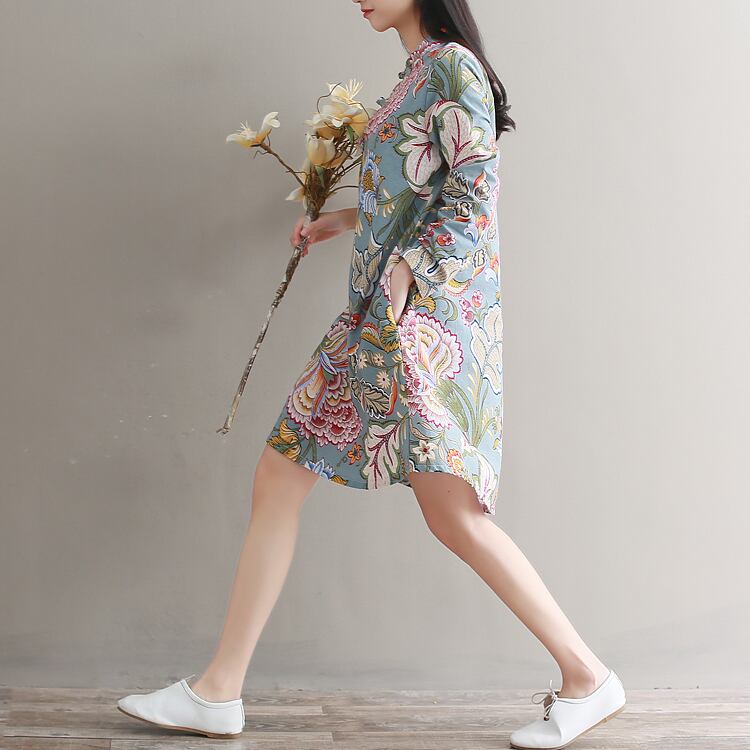 送料無料୨♥୧ 自然派スタイルスプリングオータムミニドレス プリントフェミニーズレディース コットン 春物 秋物 AOS62718359231