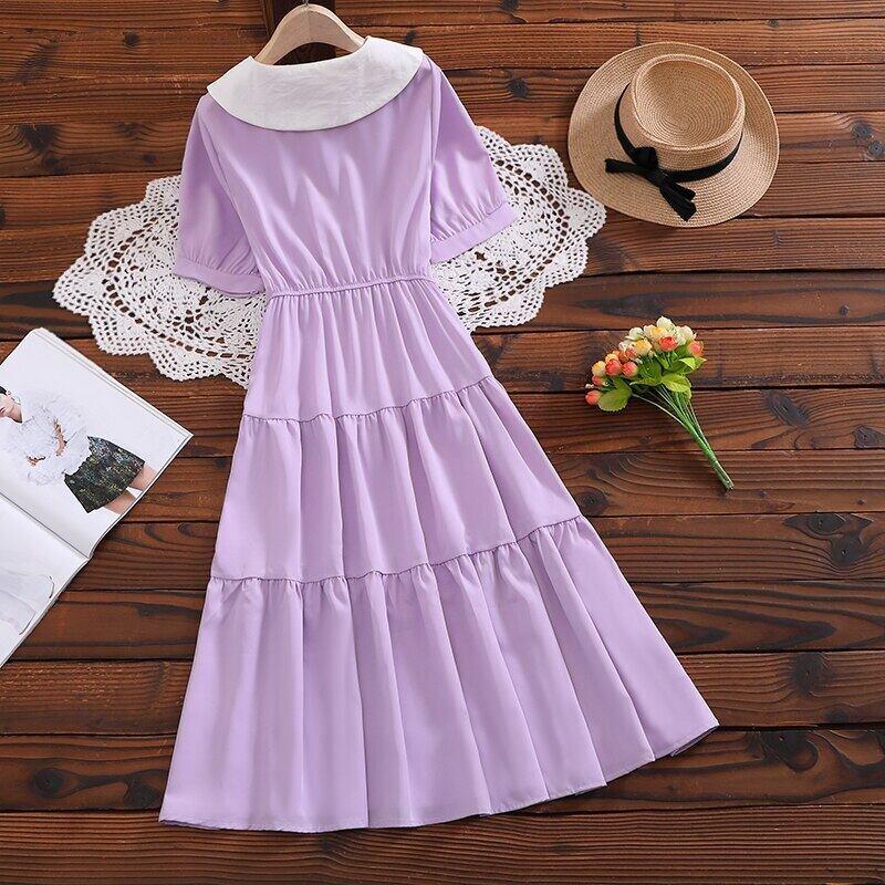 送料無料୨♥୧ カラーサマーレディースミディドレス グリーン半袖スリーブフリル ショート レッド ハーフスリーブ ラッフル 大人ガーリー スウィート キュート カジュアル 夏物 パープル AOS26837782778