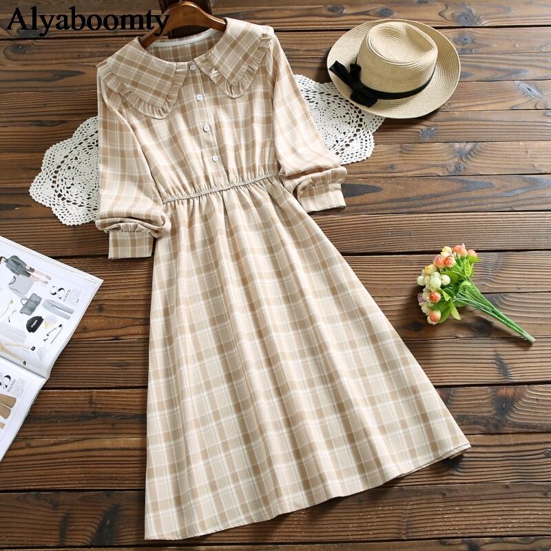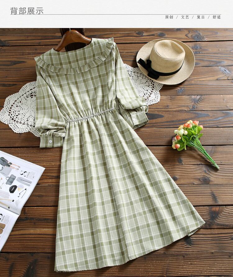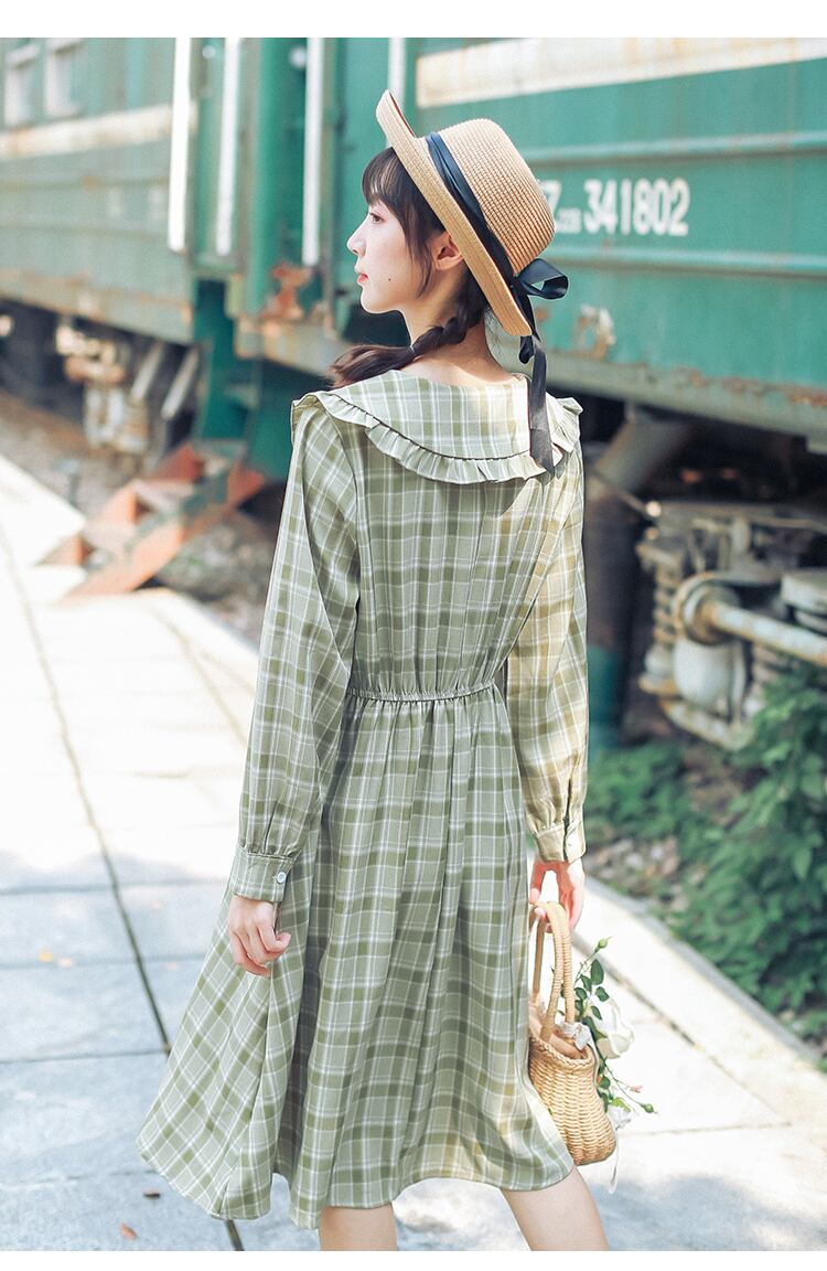 送料無料୨♥୧ スタイルオータムスプリングレディースドレス カラーグリーン格子柄フェミニーズ 大人ガーリー スウィート キュート カジュアル 春物 秋物 AOS40648671764