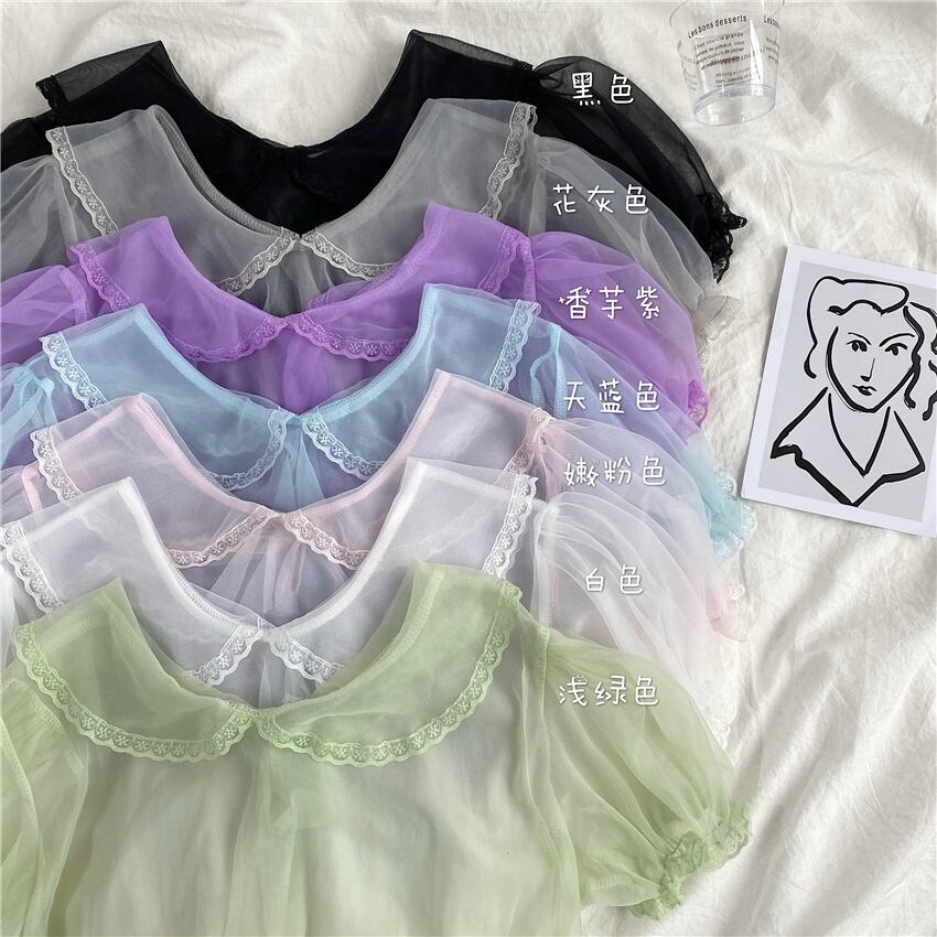 送料無料୨♥୧ スタイルサマーレディースクロップトップ トップス カラーシャツ メッシュブラウス 大人ガーリー スウィート キュート カジュアル 夏物 AOS22951508825