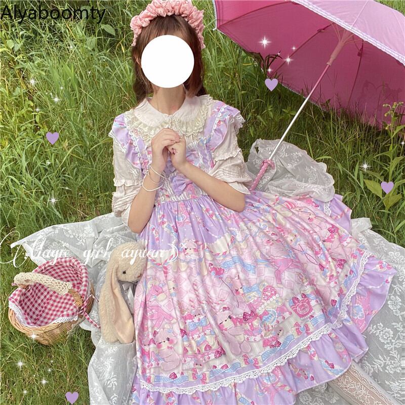 送料無料୨♥୧ レディースドレス ブルーブラックプリントノースリーブリボンフリル ピンク ラッフル 大人ガーリー スウィート キュート カジュアル パープル AOS43772036020