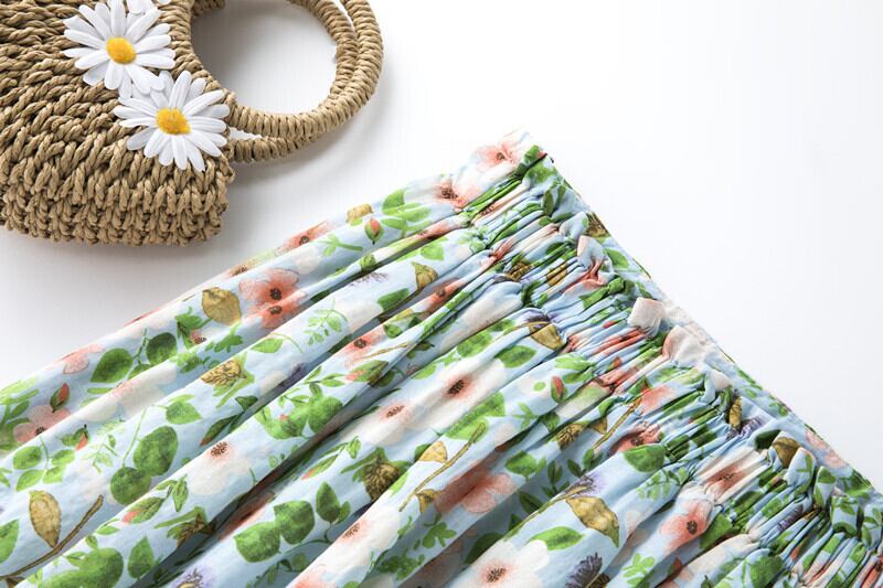 送料無料୨♥୧ スプリングサマーレディースAラインスカート ウェストグリーンフローラル コットン 大人ガーリー スウィート キュート カジュアル 春物 夏物 花柄 AOS15031460526