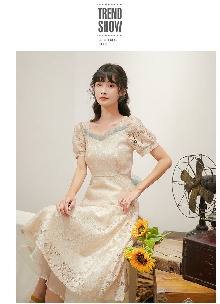 送料無料୨♥୧ サマーレディースロングドレス カラーレースバンドミディ 夏物 スクウェア AOS25291790022