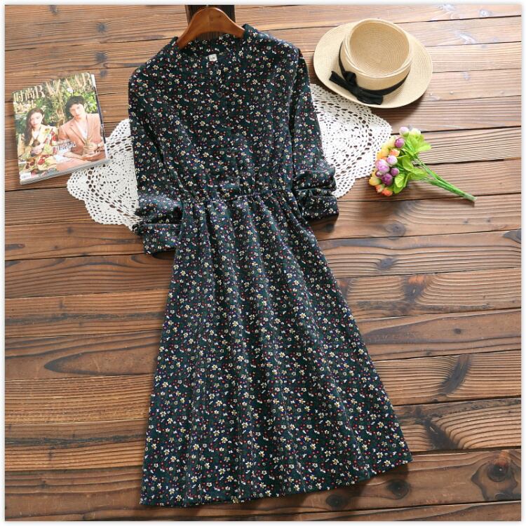 送料無料୨♥୧ オータムウィンターレディースミディドレス スタンドカラーカラーフローラルプリント柄長袖スリーブヴィンテージ ロング 大人ガーリー スウィート キュート カジュアル 秋物 冬物 花柄 ビンテージ AOS90130234371