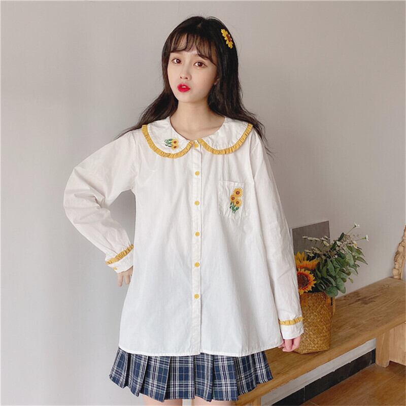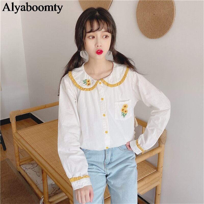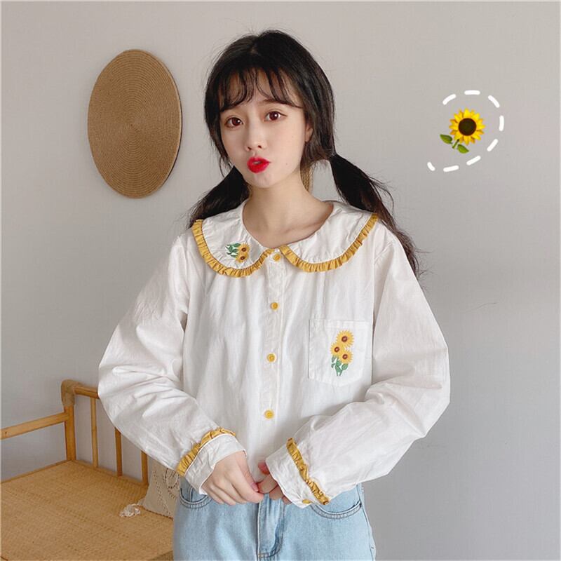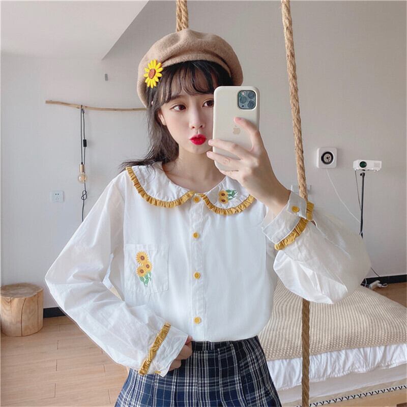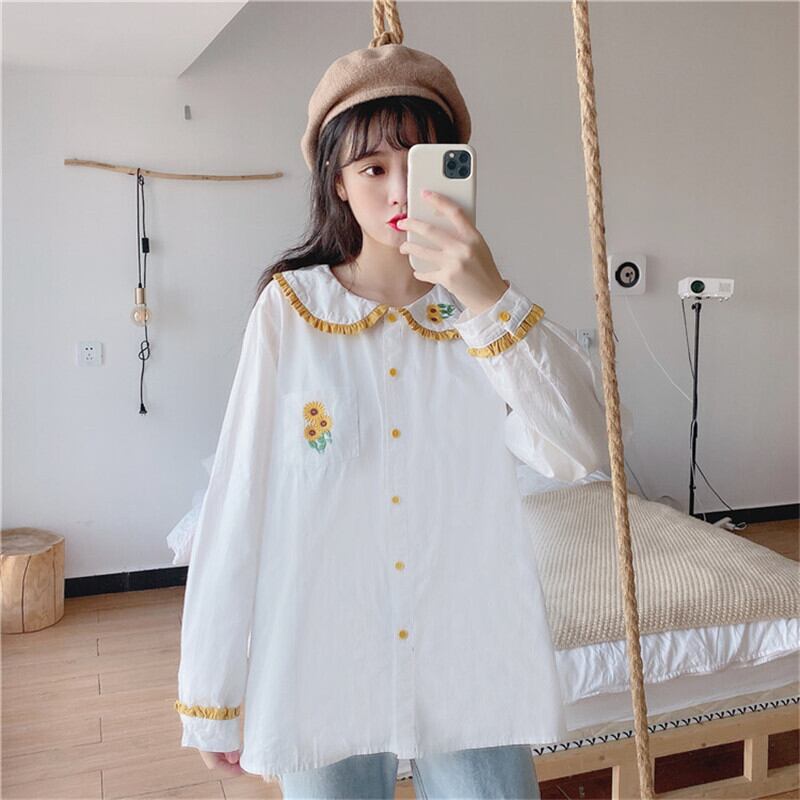 送料無料୨♥୧ スタイルレディーススプリングオータムホワイトブラウス カラー刺繍トップス 大人ガーリー スウィート キュート カジュアル 春物 秋物 フラワーデザイン AOS96409164967