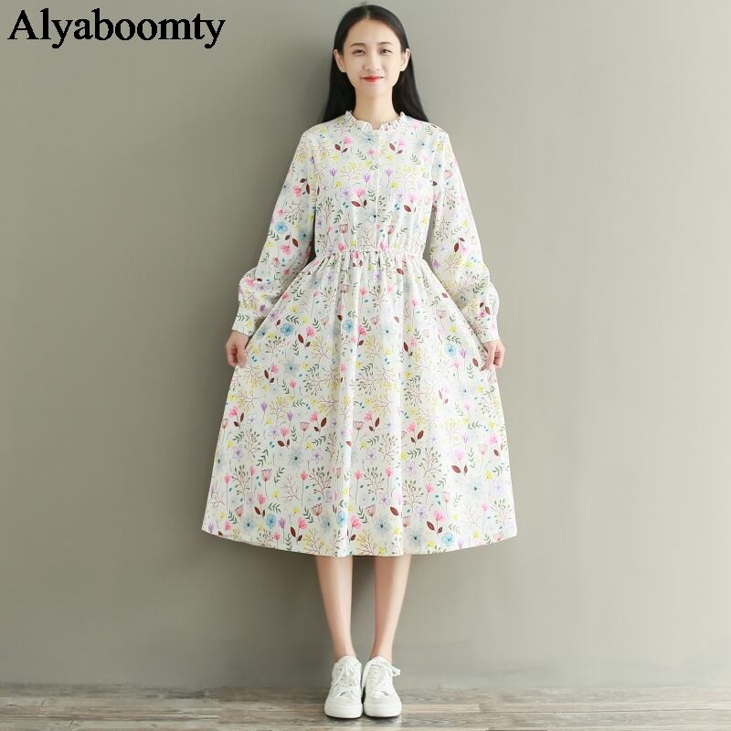 送料無料୨♥୧ オータムレディースミディドレス カラーホワイトフローラルプリント ロング 大人ガーリー スウィート キュート カジュアル 秋物 花柄 AOS82466103475