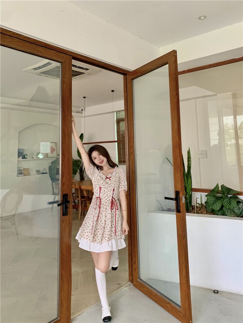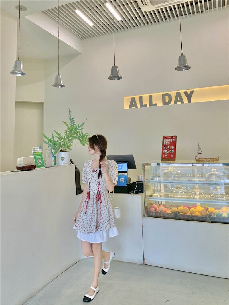 送料無料୨♥୧ サマーレディースフローラルドレス カラーバンドプリント柄半袖スリーブシフォン ショート ハーフスリーブ 大人ガーリー スウィート キュート カジュアル 夏物 花柄 AOS20409673549