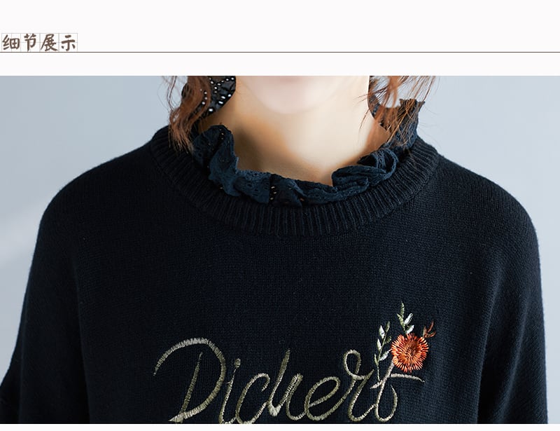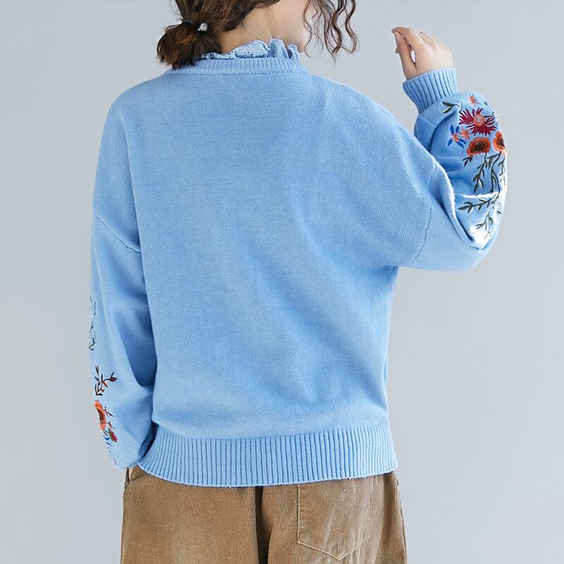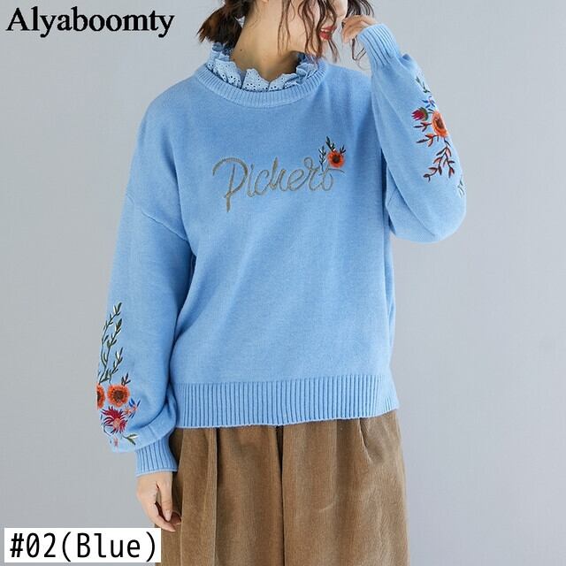 送料無料୨♥୧ ウィンターレディースプルオーバー ブラックブルーヴィンテージニットセーター フローラル刺繍ウール 冬物 花柄 ビンテージ AOS20085069832