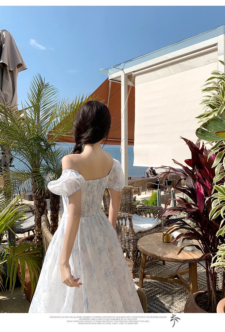 送料無料୨♥୧ サマーレディースロングドレス フローラルプリントバンドスリーブ 夏物 ビーチ 花柄 AOS44285116925