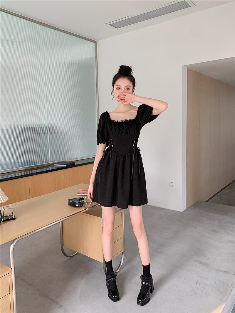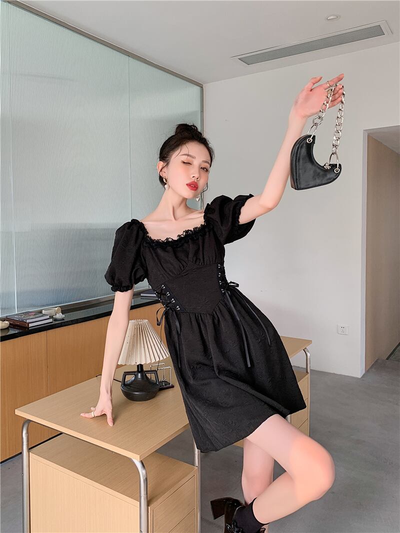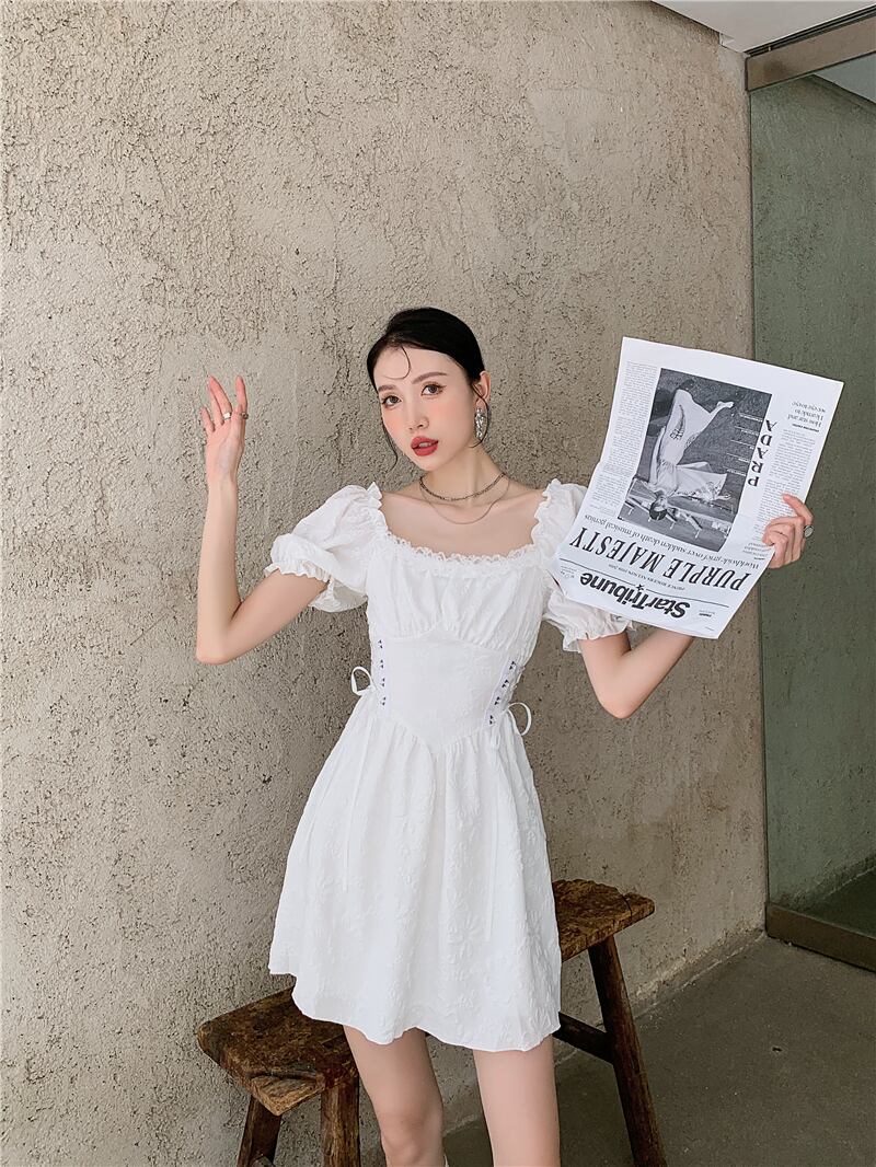 送料無料୨♥୧ サマーレディーススタイルミニドレス ホワイトブラックフローラルジャカードスリーブバンドドレス ワンピース 夏物 花柄 AOS80680244653