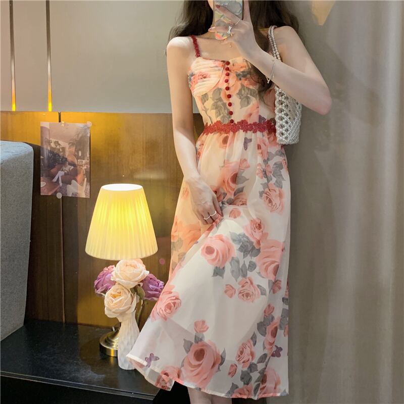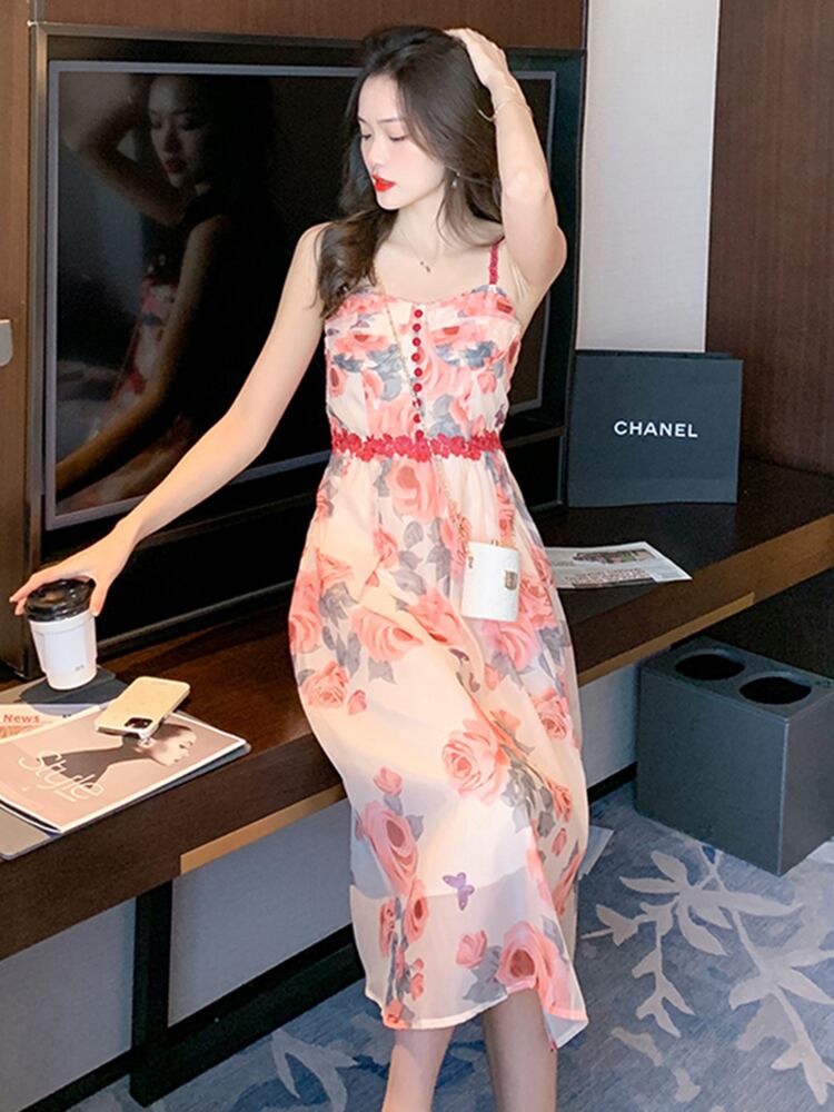 送料無料୨♥୧ サマーレディースドレス フローラルプリントノースリーブ 夏物 ビーチ 花柄 AOS94871915897