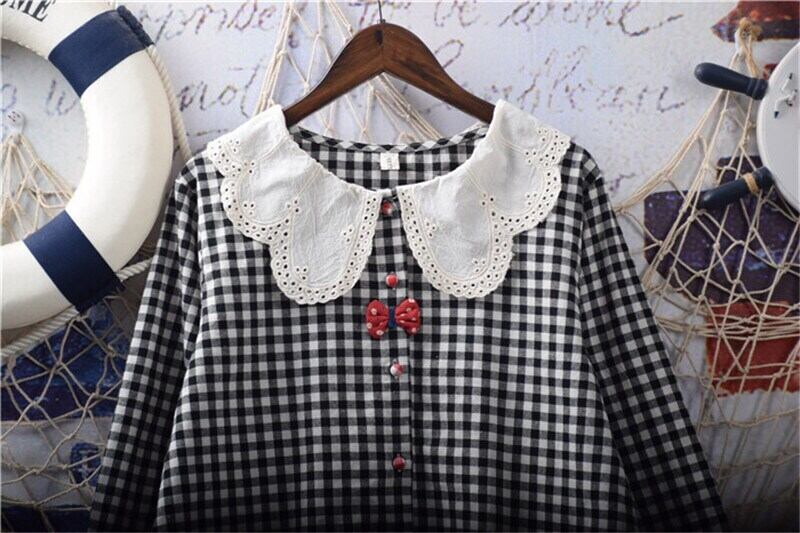 送料無料୨♥୧ スプリングオータムレディースシャツ カラーブラックレッドリボン格子柄ブラウス ヴィンテージ コットン 大人ガーリー スウィート キュート カジュアル 春物 秋物 ビンテージ AOS99889789638