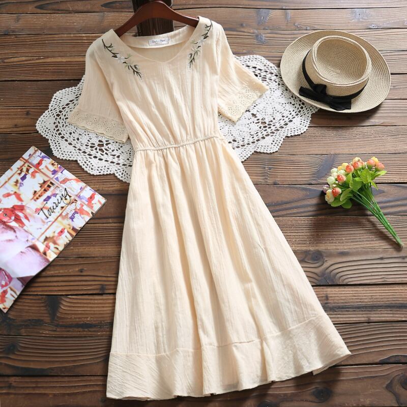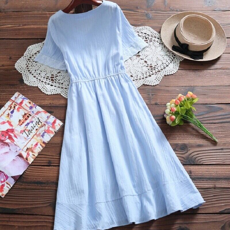 送料無料୨♥୧ サマーレディースドレス Vネックブルーフローラル刺繍ジャカードヴィンテージドレス ワンピース コットン 大人ガーリー スウィート キュート カジュアル 夏物 花柄 ビンテージ AOS51651905192