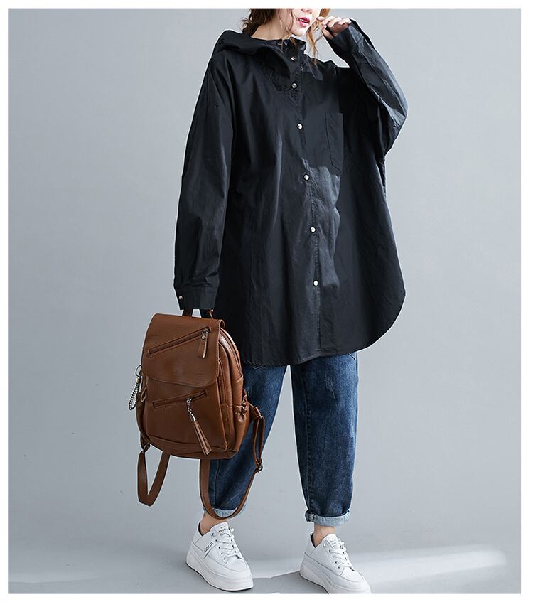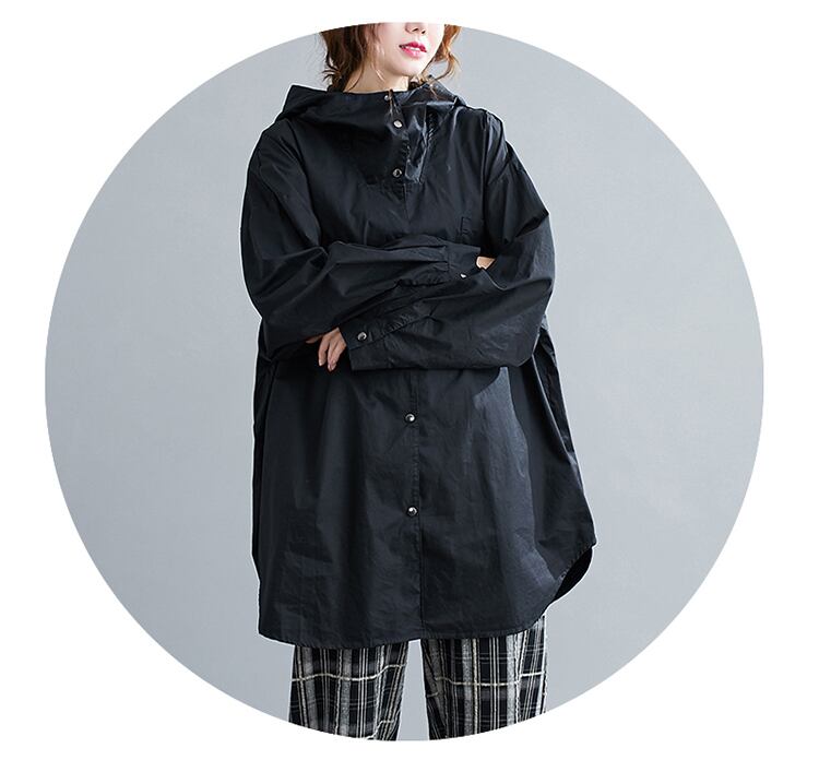 送料無料୨♥୧ スプリングオータムレディースベーシックジャケット フードブラックネイビーブルーバギーアウター長袖スリーブ ロング 春物 秋物 AOS76283454026