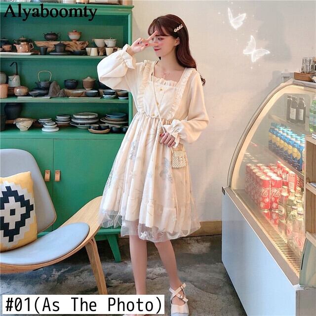 送料無料୨♥୧ スタイルスプリングオータムレディースドレス カラープリント柄メッシュ 大人ガーリー スウィート キュート カジュアル 春物 秋物 スクウェア AOS50035112224