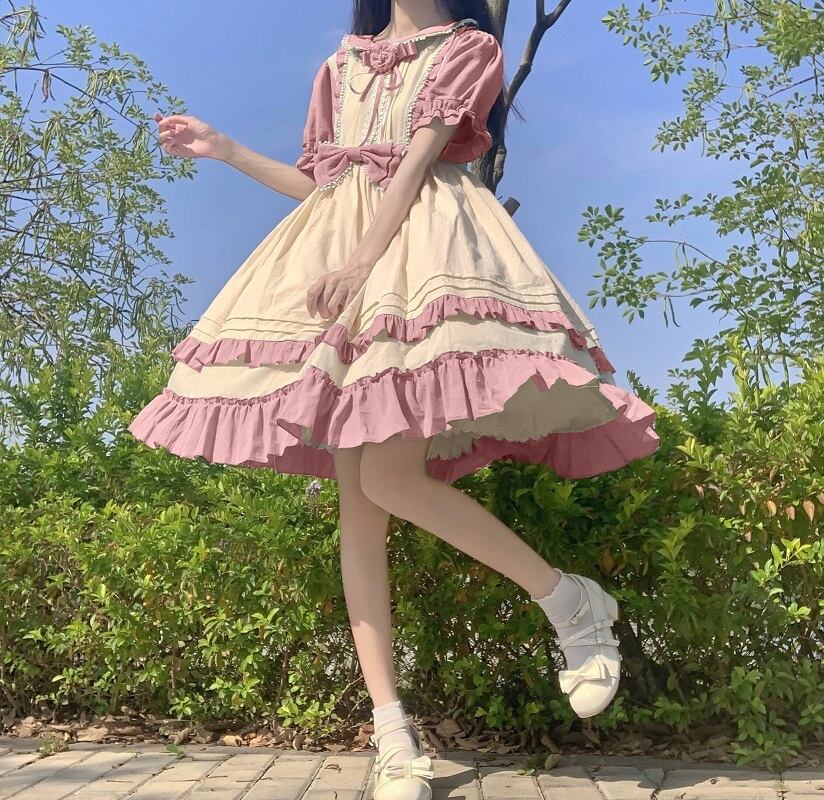 送料無料୨♥୧ サマーレディースドレス カラーパッチワークフリル ラッフル 大人ガーリー スウィート キュート カジュアル 夏物 AOS15101593821