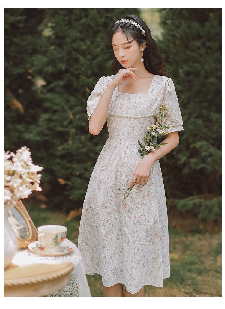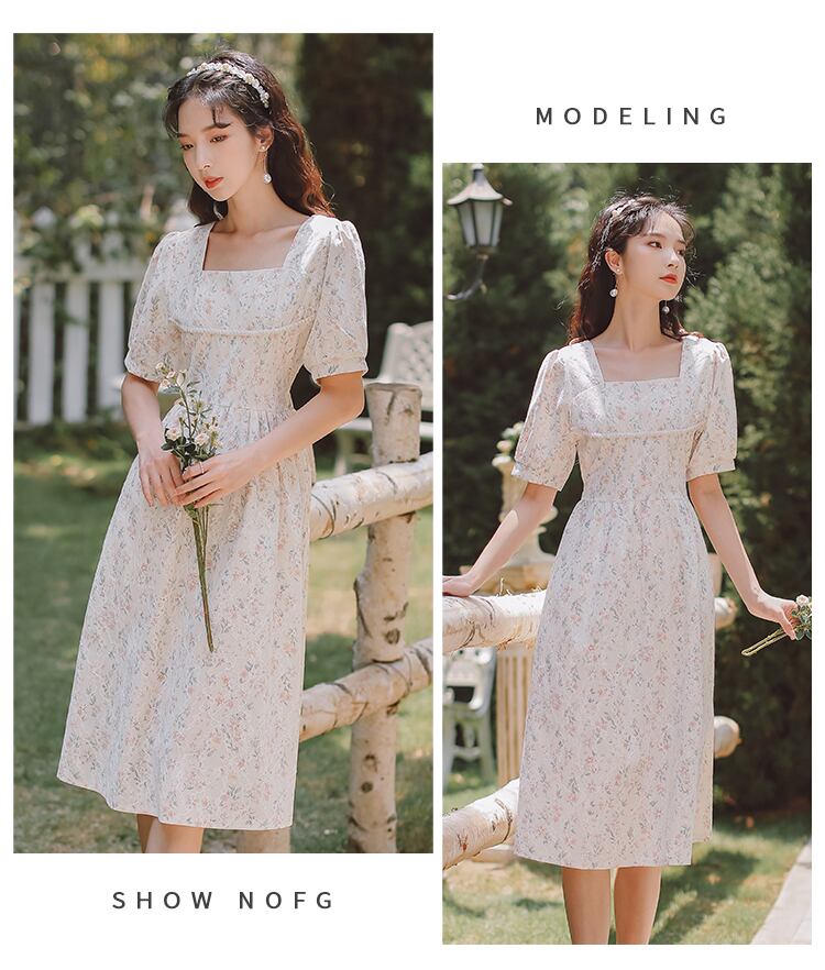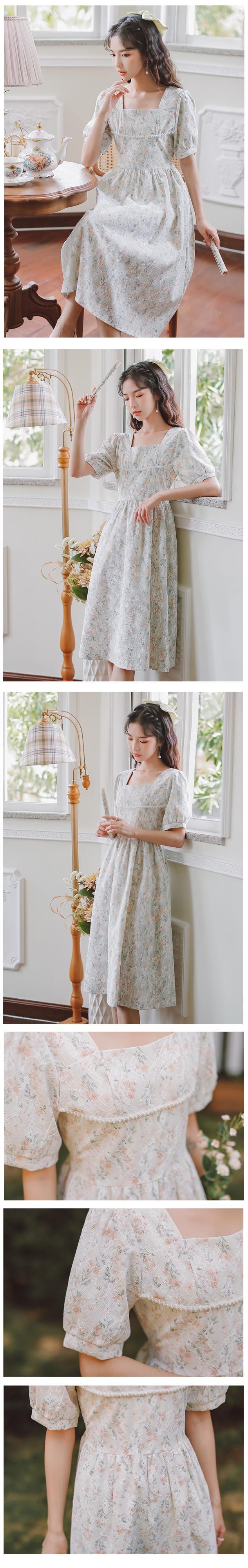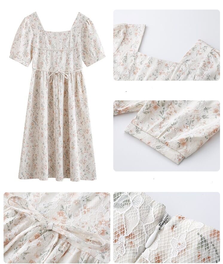 送料無料୨♥୧ サマーレディースミディドレス カラーレースフローラルパッチワークスリーブ 大人ガーリー スウィート キュート カジュアル 夏物 花柄 スクウェア AOS38013564422