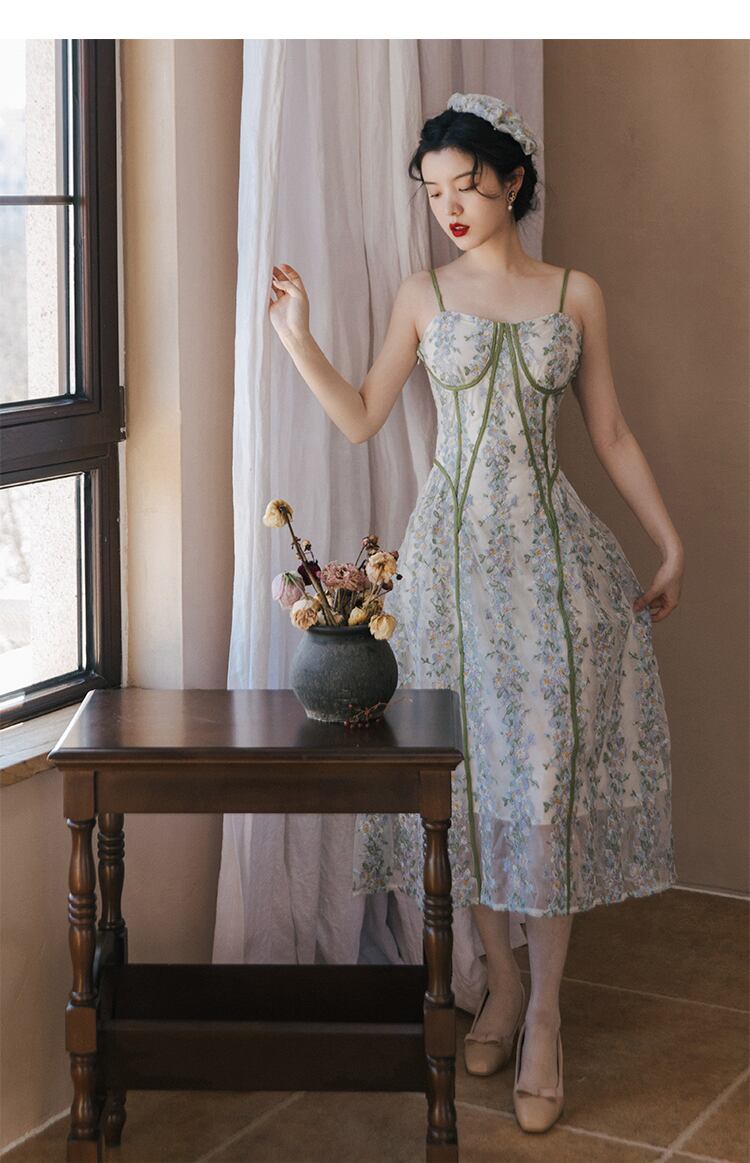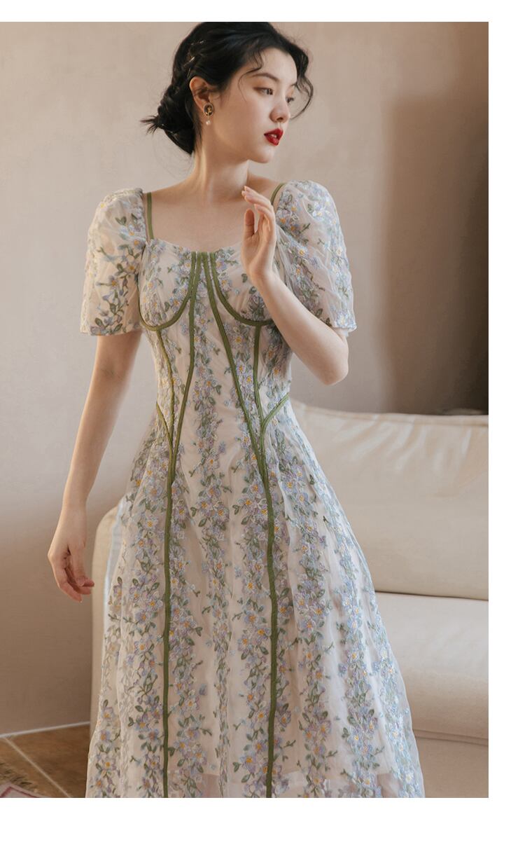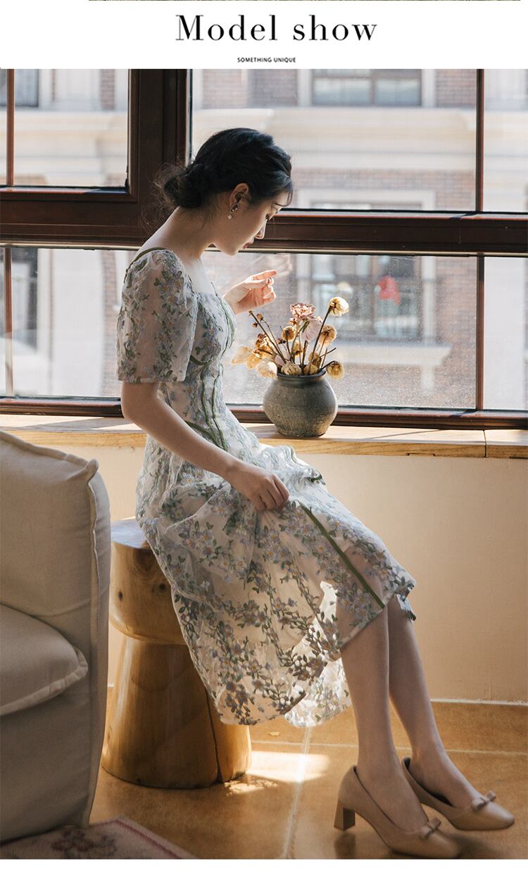 送料無料୨♥୧ サマーレディースミディメッシュドレス カラーフローラル刺繍 夏物 花柄 スクウェア AOS70376813799
