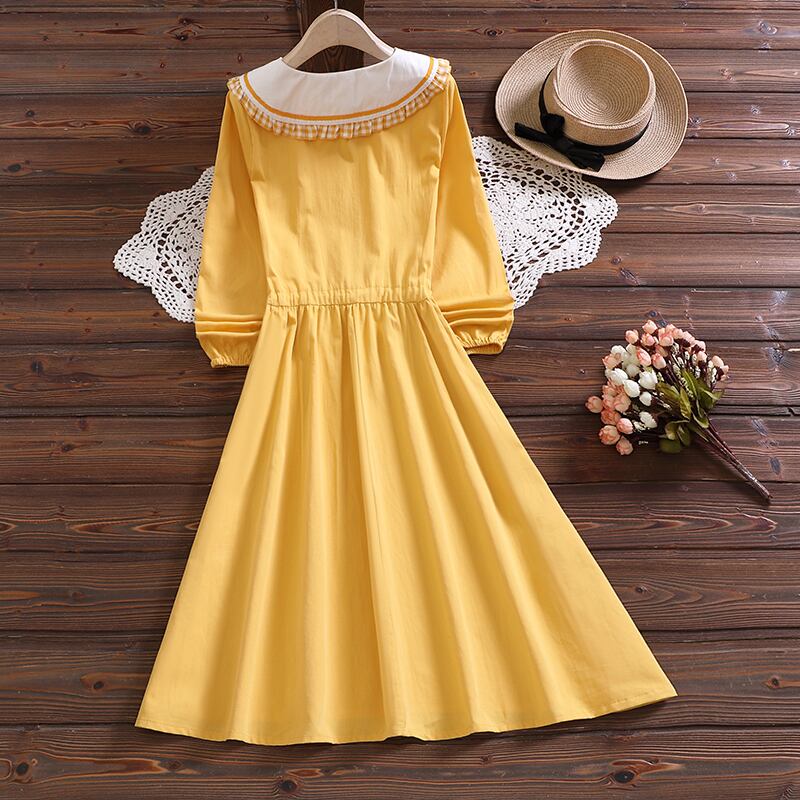 送料無料୨♥୧ スタイルレディースドレス カラーパッチワークイエロー刺繍 大人ガーリー スウィート キュート カジュアル AOS23539209179