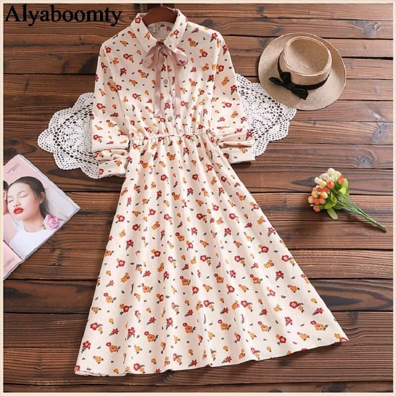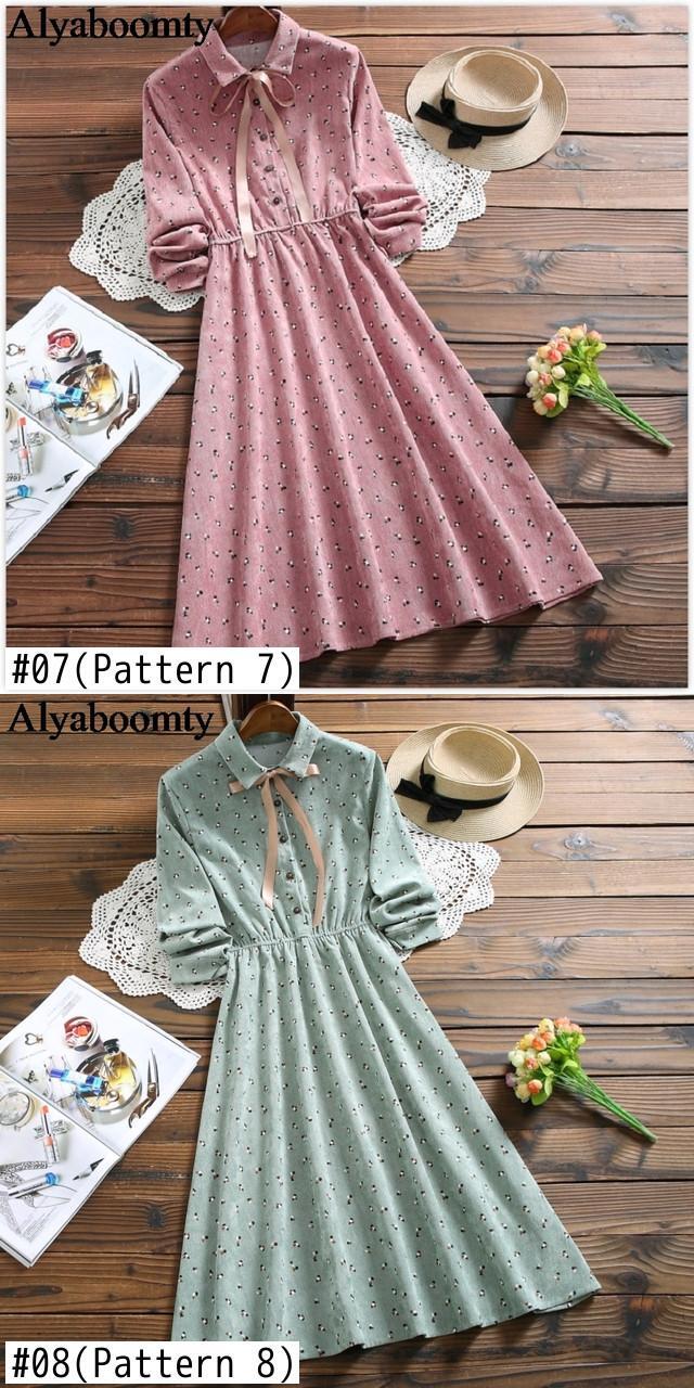 送料無料୨♥୧ オータムスプリングレディースドレス カラーフローラルプリント柄コーデュロイミディ 大人ガーリー スウィート キュート カジュアル 春物 秋物 花柄 AOS98773037284