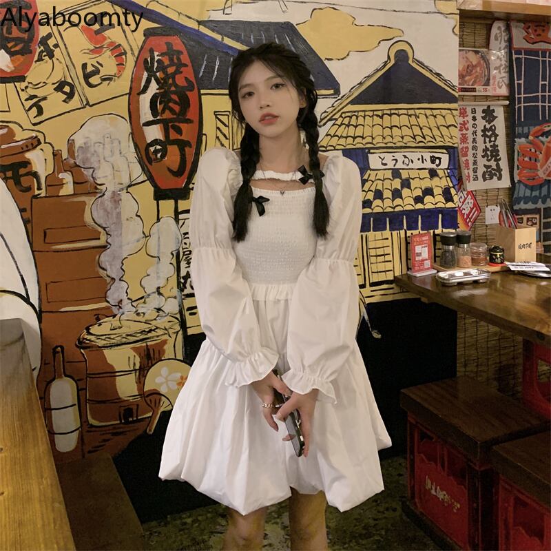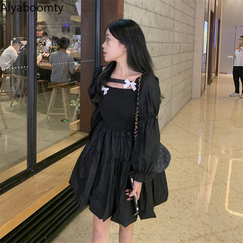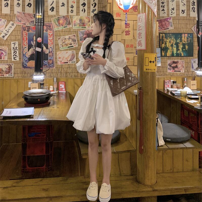 送料無料୨♥୧ レディースブラックホワイトドレス カラーリボンガウンミニ 大人ガーリー スウィート キュート カジュアル かわいい スクウェア AOS57474048550