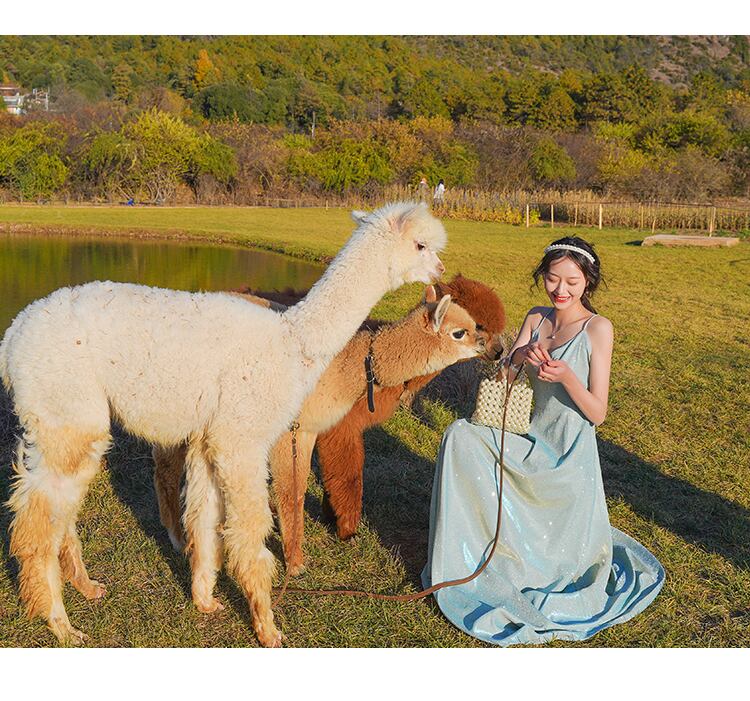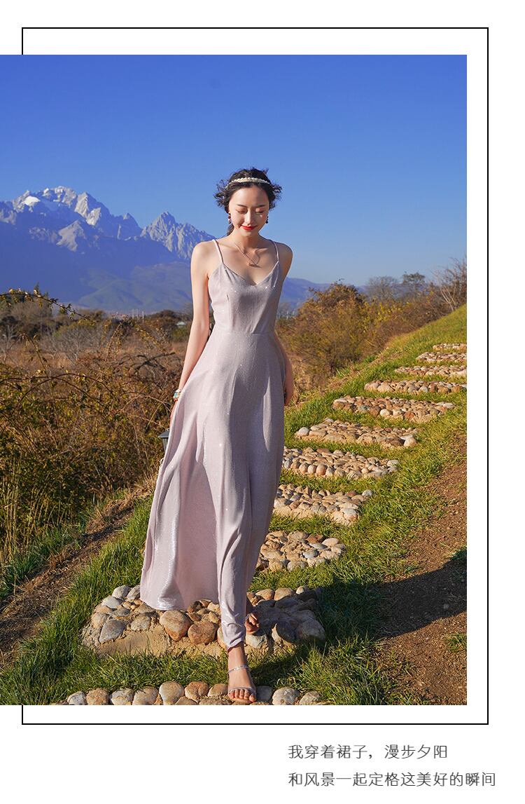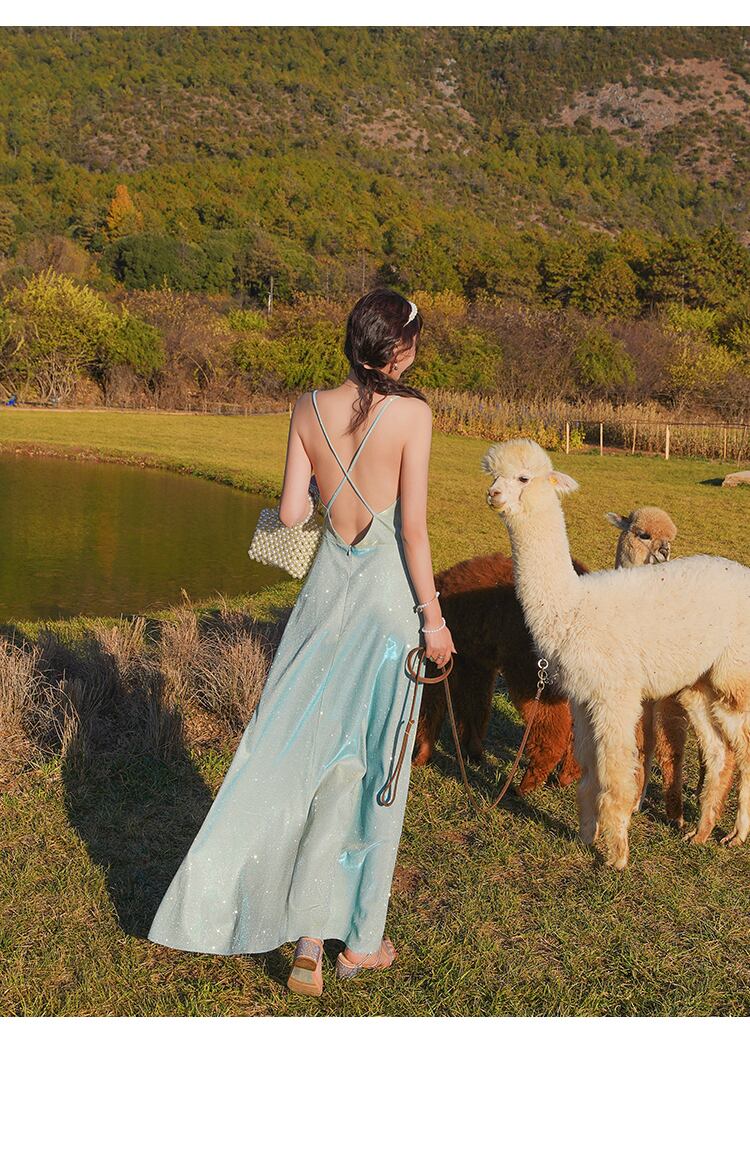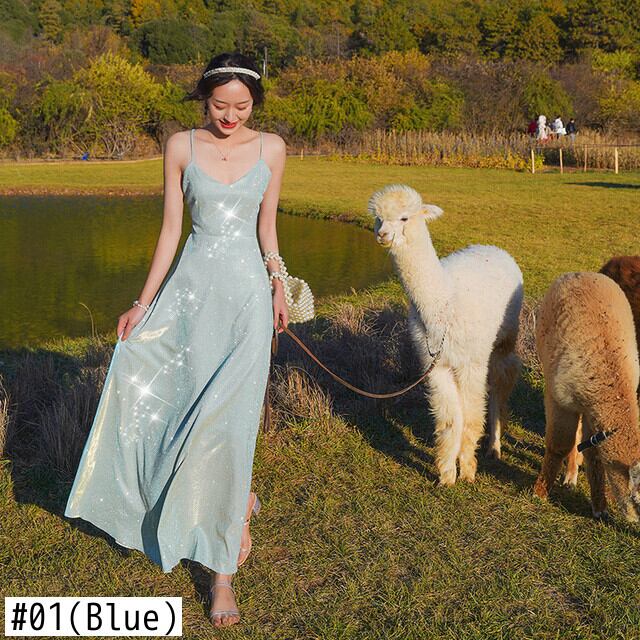 送料無料୨♥୧ サマーレディースマキシロングノースリーブドレス Vネックブルーバックレス ピンク 長袖 夏物 AOS95555031321