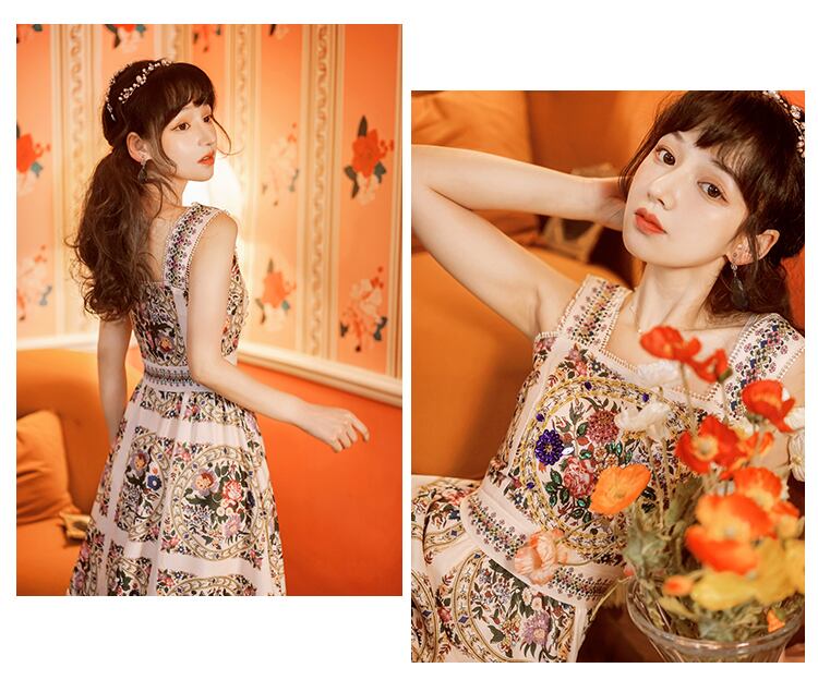 送料無料୨♥୧ サマーレディースボヘミアンドレス エスニックスタイルプリント柄ミディノースリーブヴィンテージ 夏物 ビーチ ビンテージ AOS65574048245
