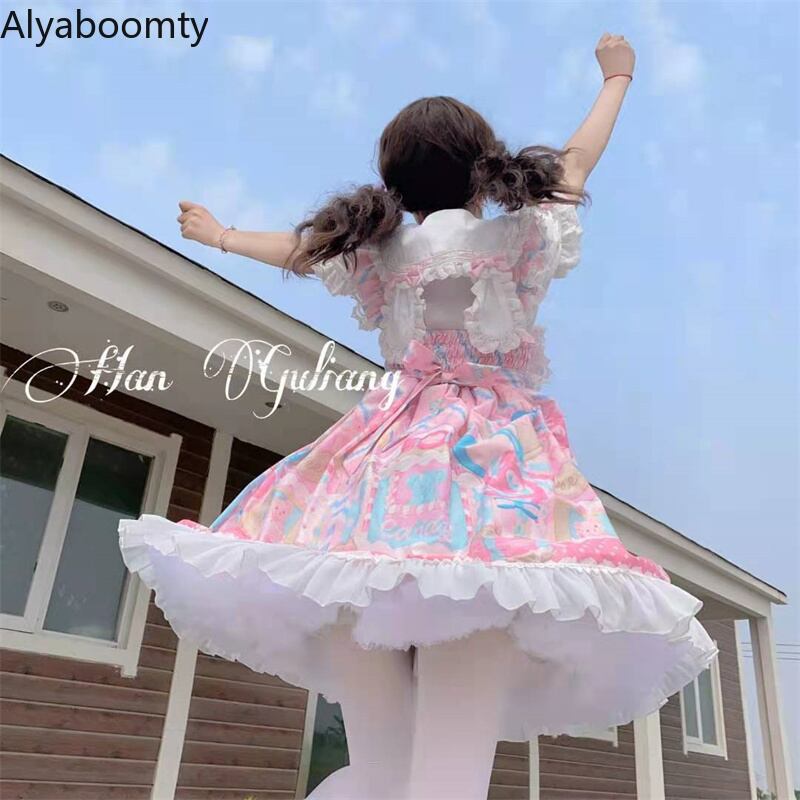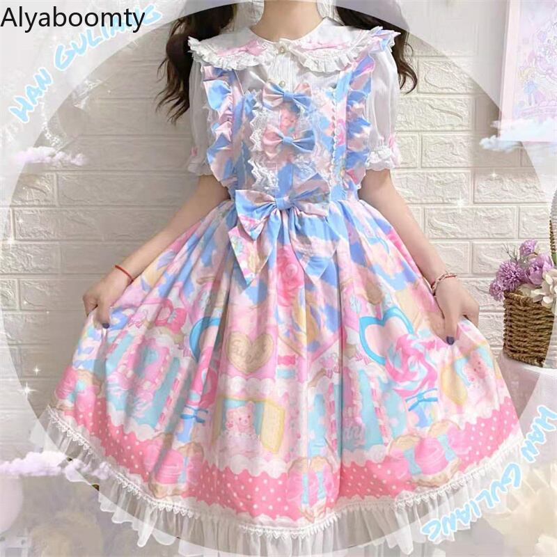 送料無料୨♥୧ スプリングオータムレディースドレス ブルーパターンリボンノースリーブフリル ピンク ラッフル 大人ガーリー スウィート キュート カジュアル 春物 秋物 AOS9807399607