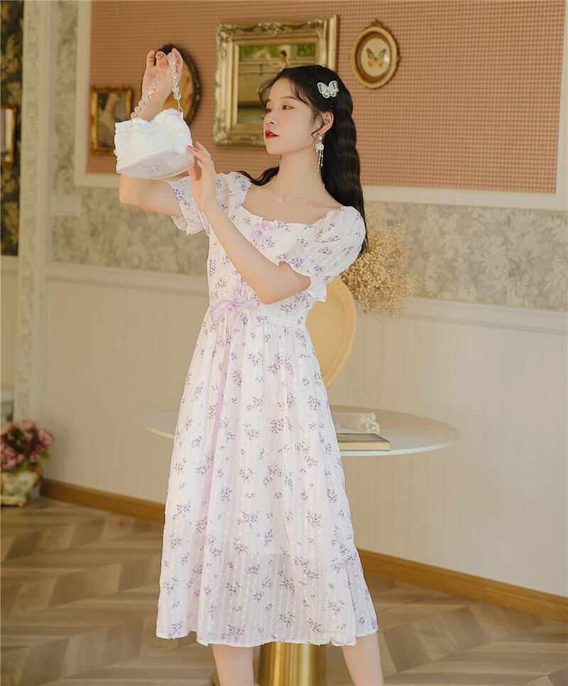 送料無料୨♥୧ サマーレディースフローラルドレス カラーバンド ピンク 大人ガーリー スウィート キュート カジュアル 夏物 花柄 フラワーデザイン スクウェア AOS81970761466