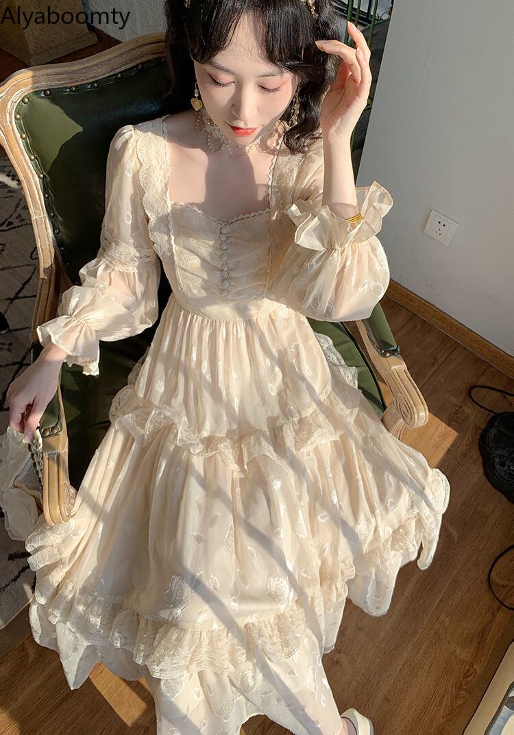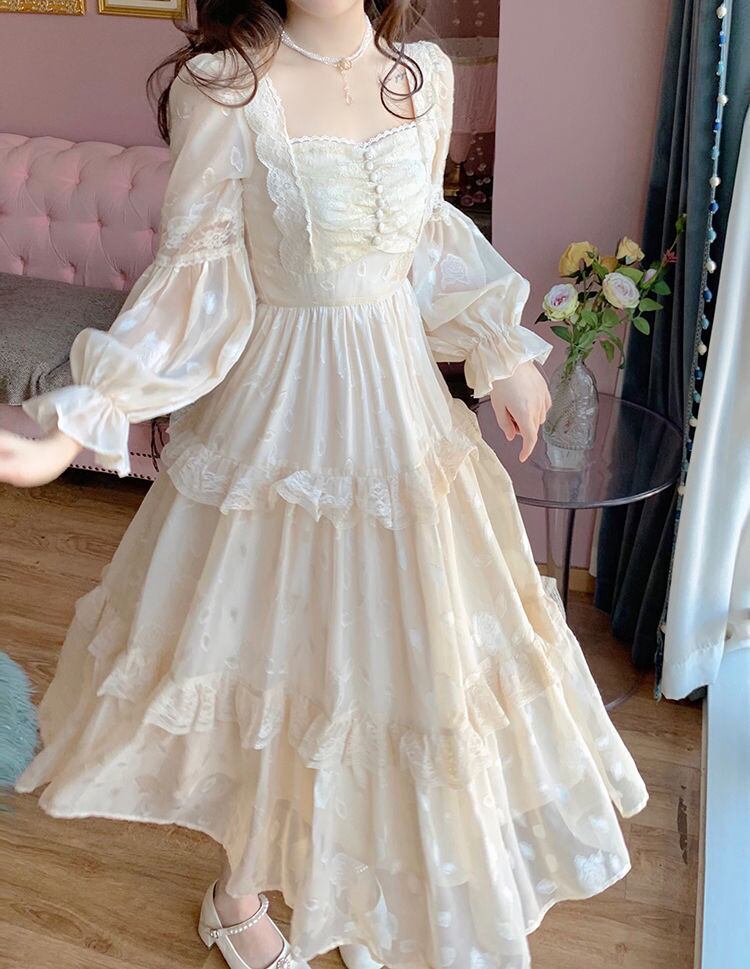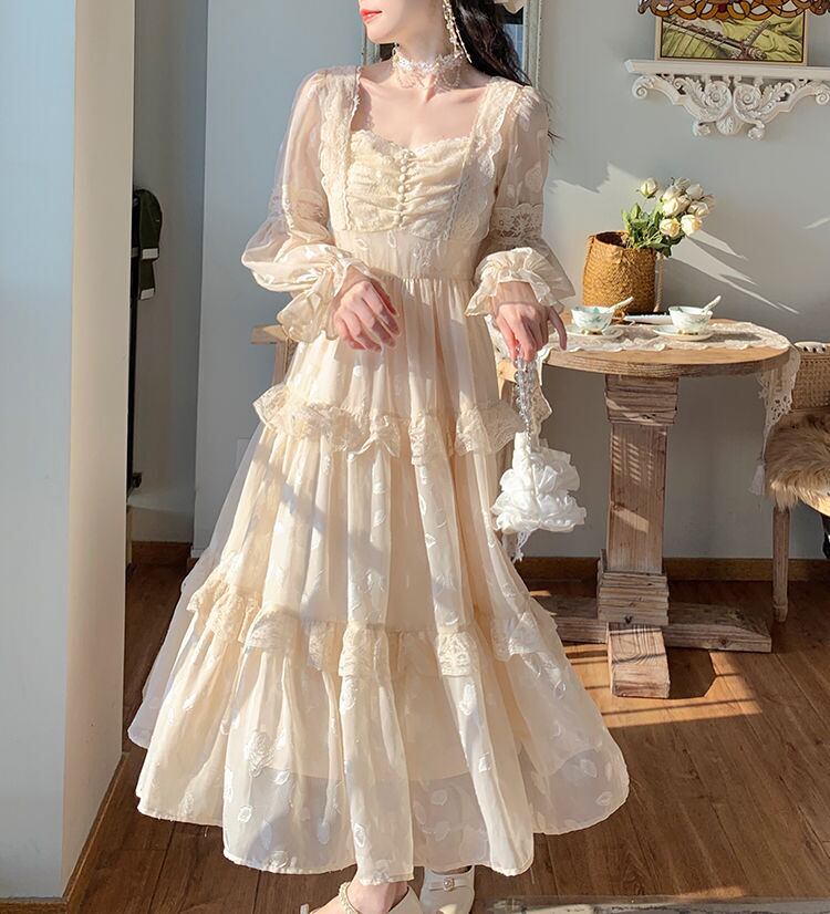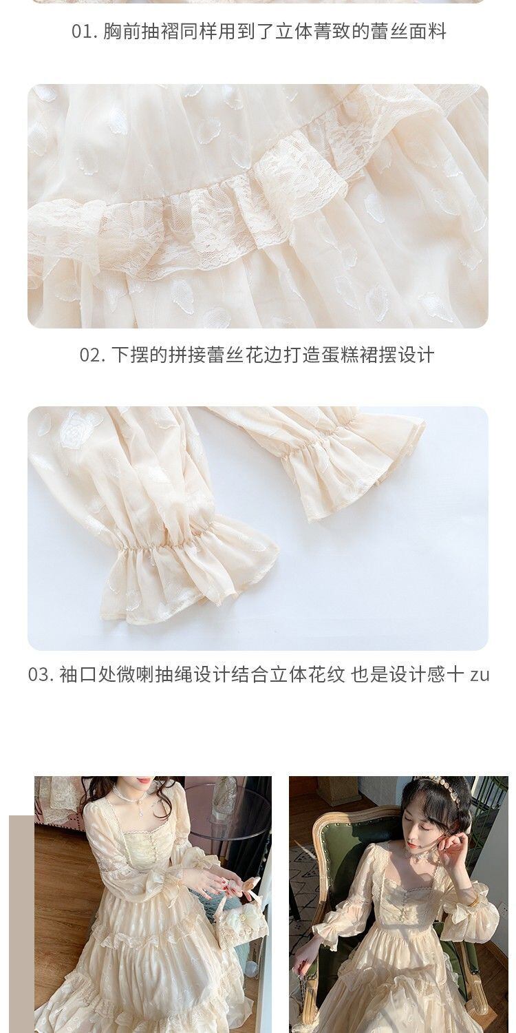 送料無料୨♥୧ スプリングオータムレディースミディドレス カラーガウンスリーブフリル ランタンスリーブ ラッフル 大人ガーリー スウィート キュート カジュアル 春物 秋物 スクウェア AOS44144129513