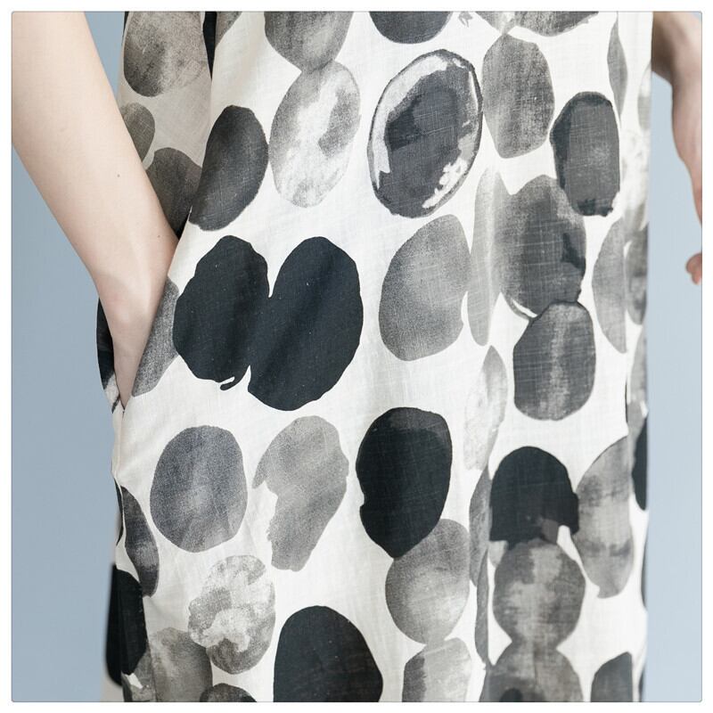 送料無料୨♥୧ サマーレディースミディドレス ノースリーブ水玉プリントヴィンテージロング コットン 夏物 ビンテージ AOS67484339249