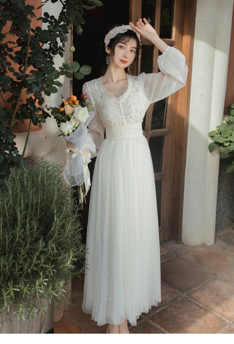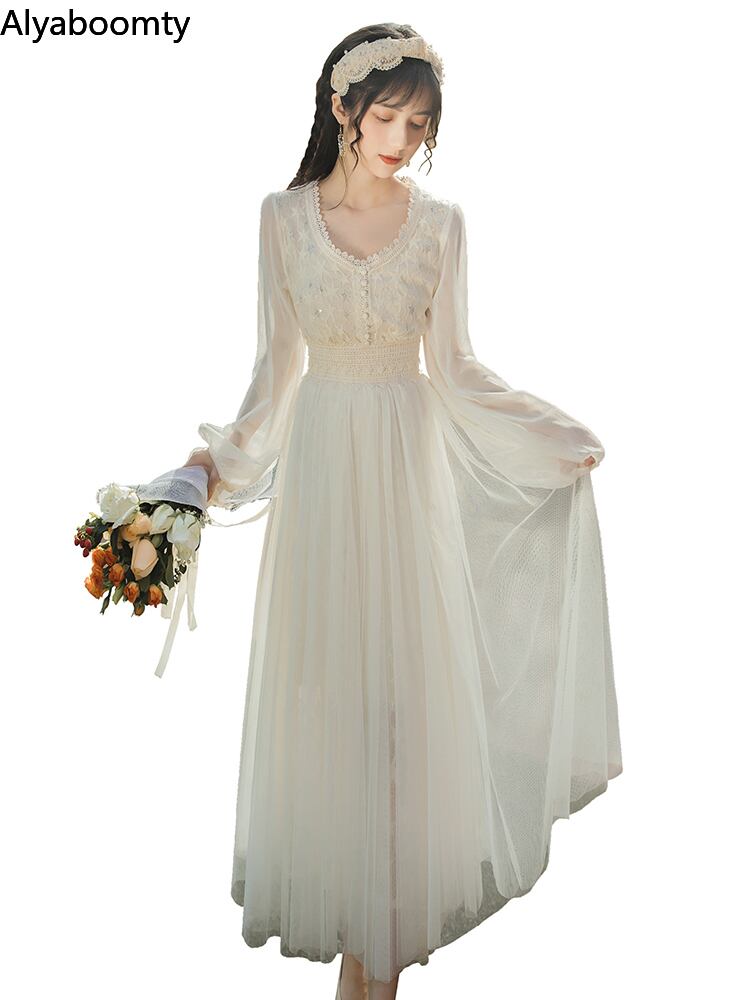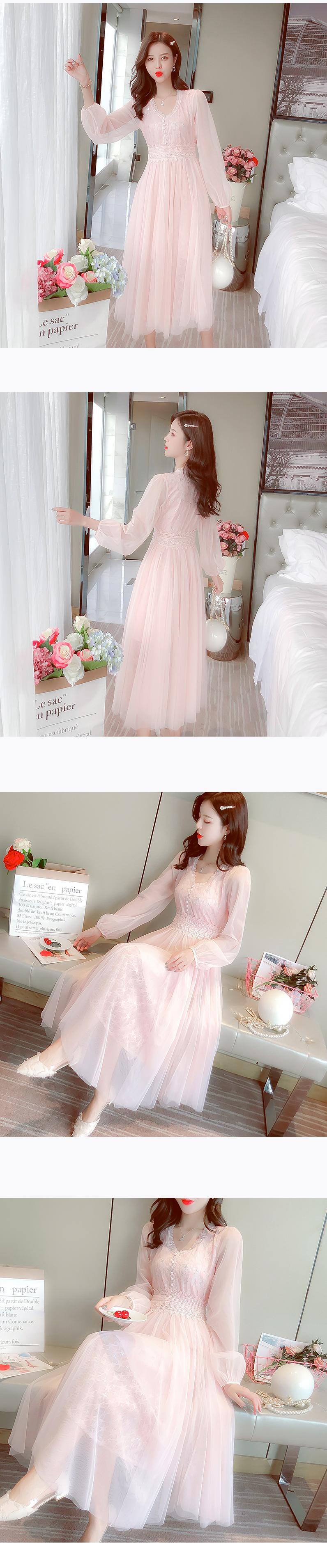 送料無料୨♥୧ スプリングレディースロングドレス ベージュメッシュ長袖スリーブ 春物 AOS89236120421