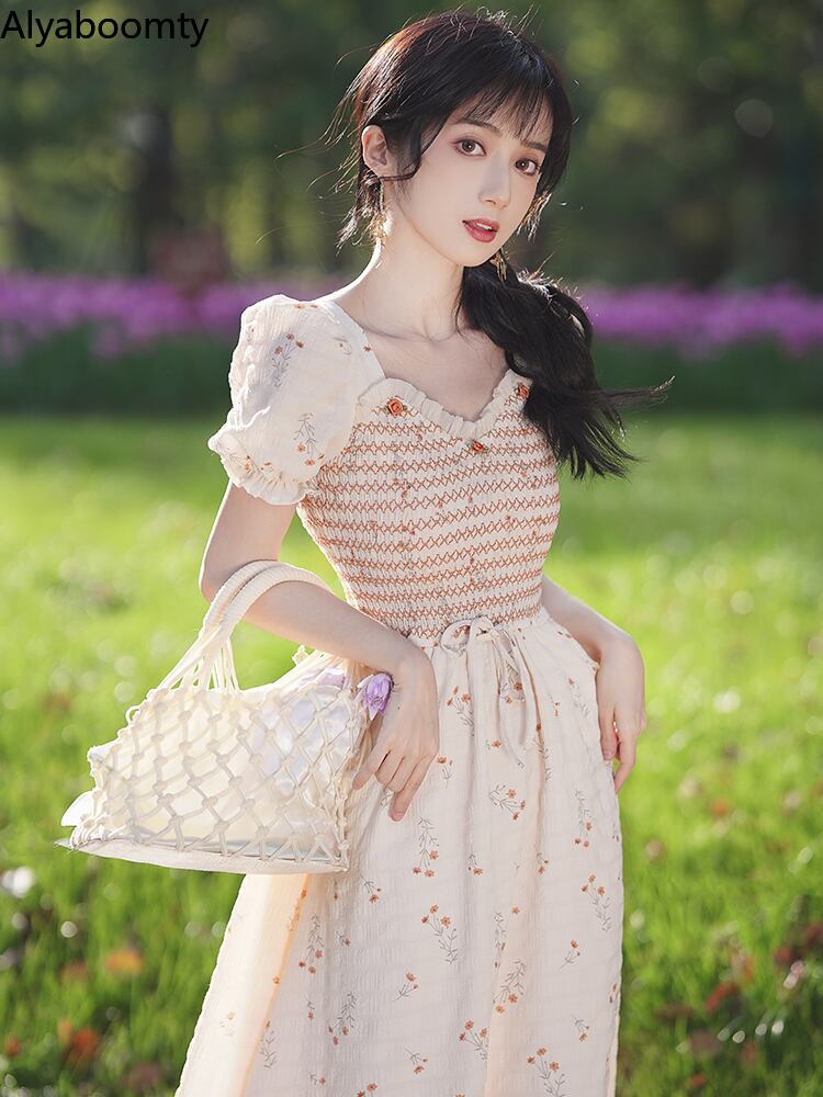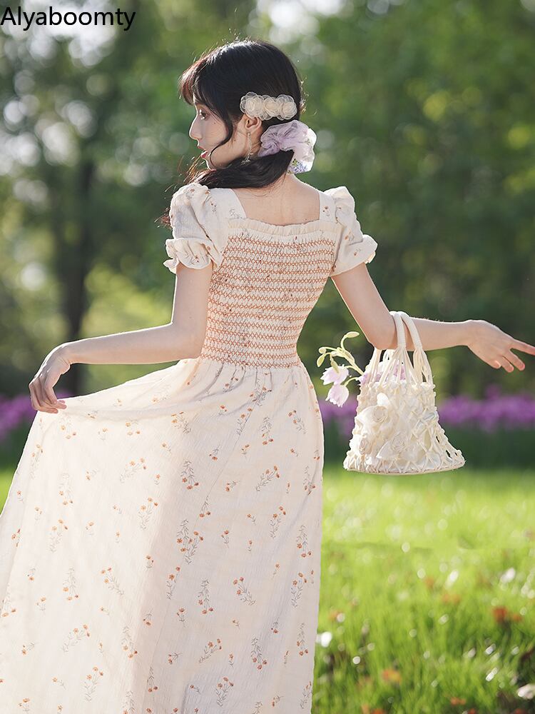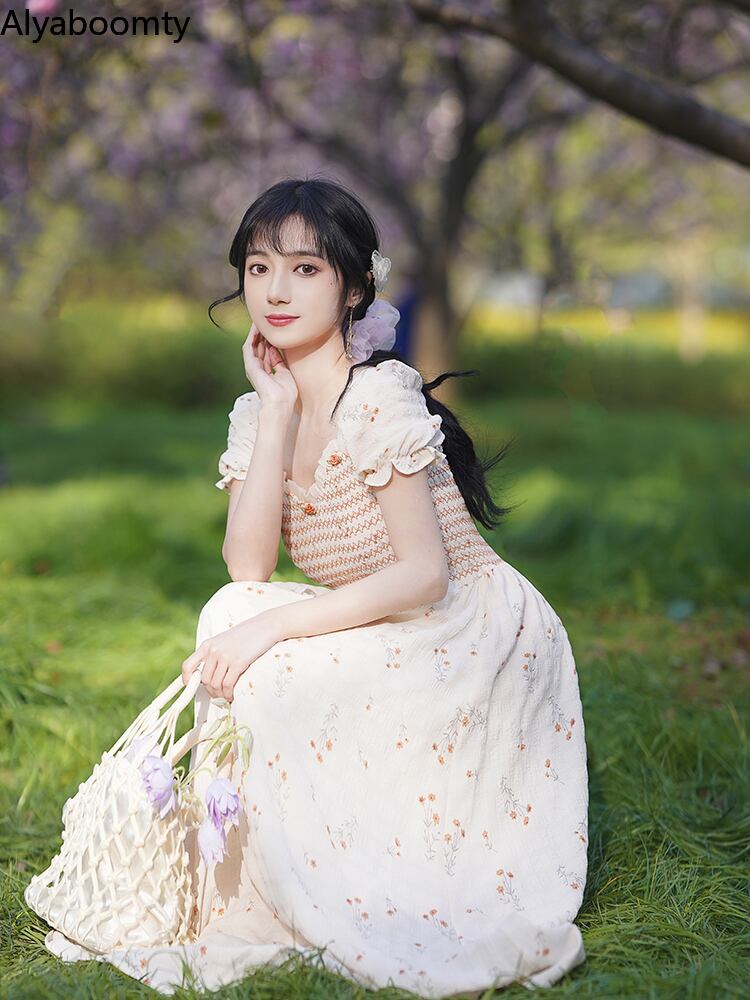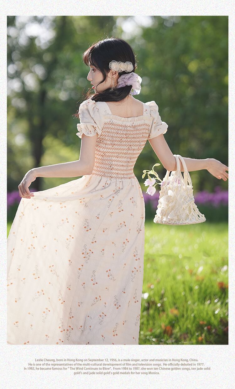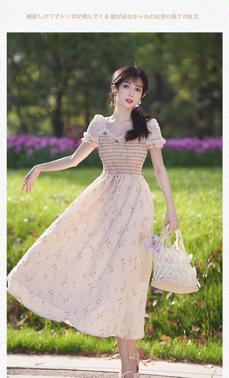 送料無料୨♥୧ サマーレディースロングAラインドレス Vネックフローラルスリーブヴィンテージ 大人ガーリー スウィート キュート カジュアル 夏物 花柄 ビンテージ AOS35188795585