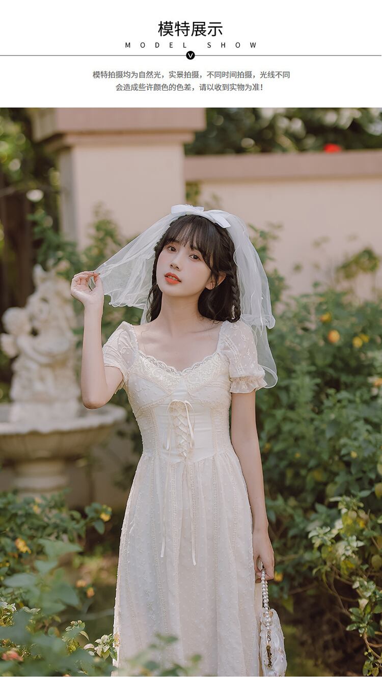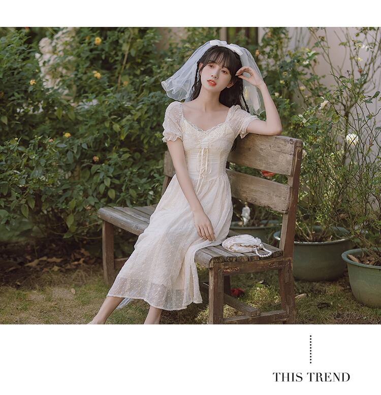 送料無料୨♥୧ ヴィンテージレディースミディAラインドレス サマーレースバンドスリーブスタンダード レトロ 夏物 ビンテージ AOS42228014906