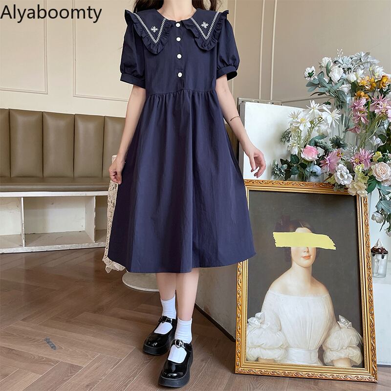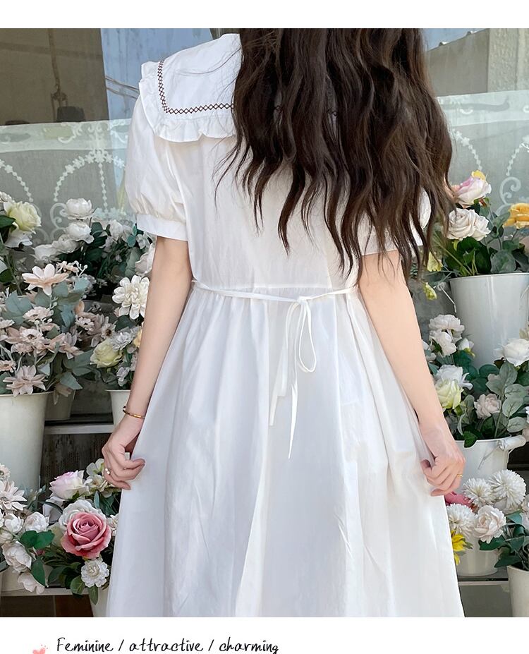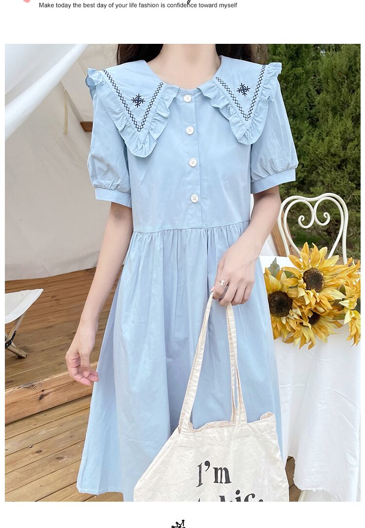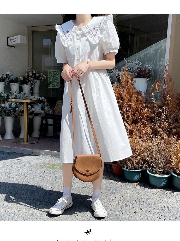 送料無料୨♥୧ サマーレディースドレス カラーホワイトブルーネイビールーズスリーブフローラル刺繍 大人ガーリー スウィート キュート カジュアル 夏物 花柄 AOS22025643299