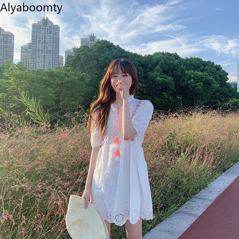 送料無料୨♥୧ サマーレディースホワイトドレス エスニックスタイルミニスリーブ 大人ガーリー スウィート キュート カジュアル 夏物 AOS89526217685