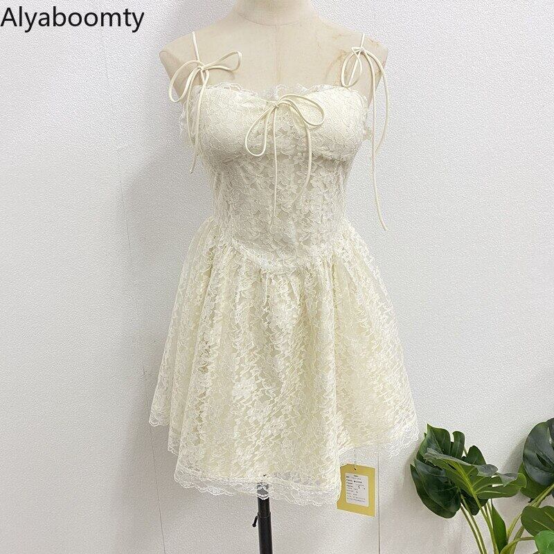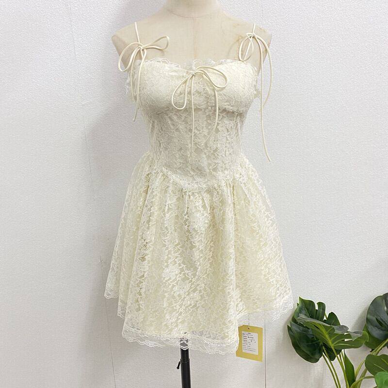 送料無料୨♥୧ サマーレディースミニドレス レースノースリーブイエローショート 大人ガーリー スウィート キュート カジュアル 夏物 AOS52255355215